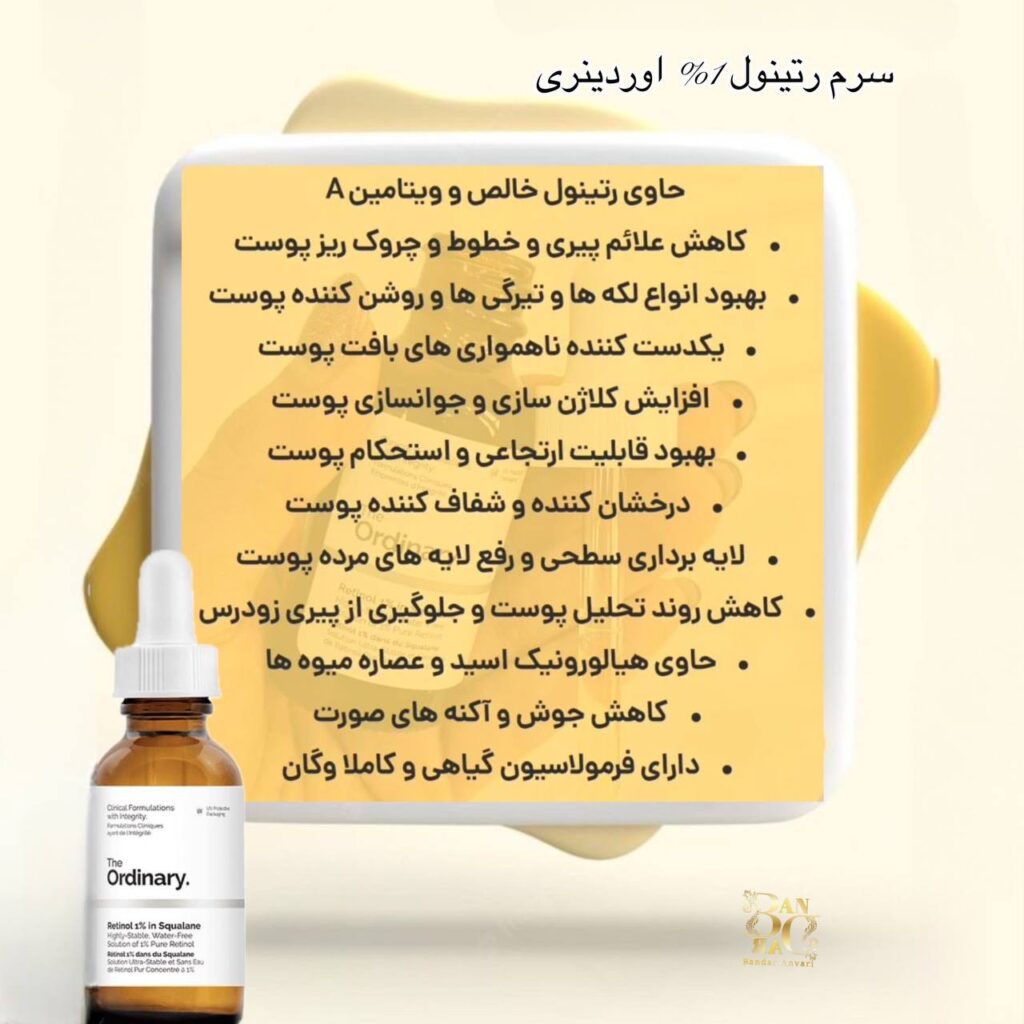 محلول لاکتیک اسید 10% + HA از برند The Ordinary یک لایهبردار ملایم و مؤثر است که به بهبود بافت پوست، کاهش چین و چروک و افزایش درخشندگی کمک میکند. این فرمول غنی از اسید لاکتیک، به آرامی سلولهای مرده پوست را از بین میبرد و با وجود اسید هیالورونیک به پوست رطوبت میبخشد. مناسب برای انواع پوست، این محصول به شما کمک میکند تا پوستی نرم، شاداب و جوان داشته باشید. تجربهای نوین از مراقبت از پوست را با The Ordinary امتحان کنید!سرم رتینول اوردینری – ضد چروک The Ordinary Retinol 1% In Squalane سرم رتینول 1 درصد در اسکوالان