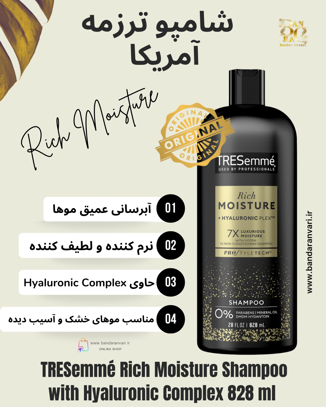 شامپو ترزمه مدل Rich Moisture با هیالورونیک کمپلکس – TRESemmé Rich Moisture Shampoo with Hyaluronic Complex