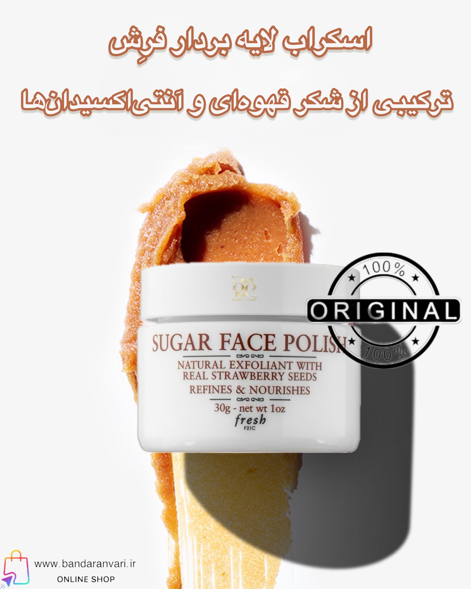 اسکراب لایهبردار صورت فرش مدل SUGAR – حاوی دانههای واقعی توتفرنگی و شکر طبیعی Fresh Sugar Face Polish Exfoliant – With Real Strawberry Seeds, Refines & Nourishes