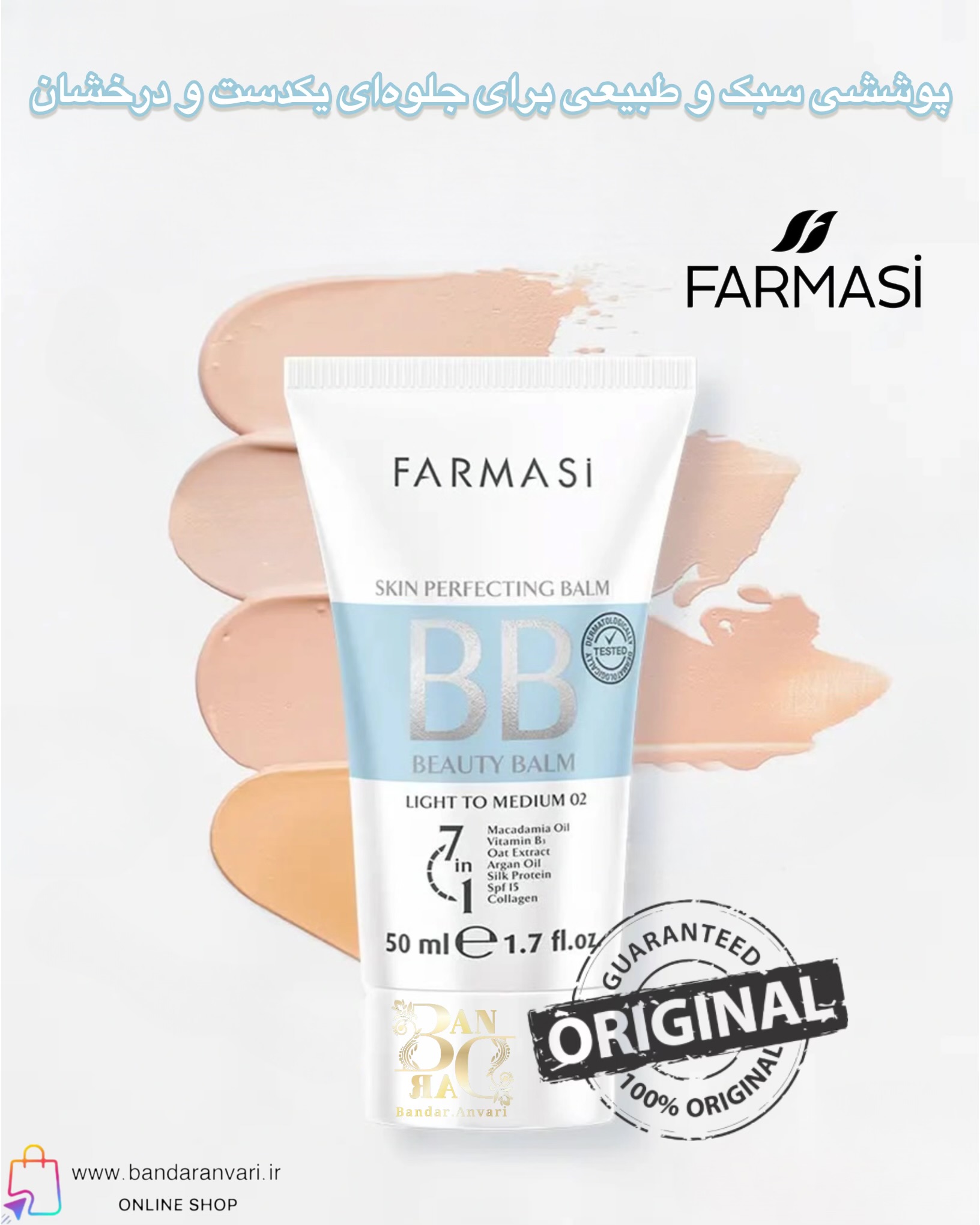 کرم بیبی فارماسی مدل “Light to Medium 02” حجم 50 میل Farmasi Skin Perfecting Balm BB Cream Light to Medium 02 – 50ml