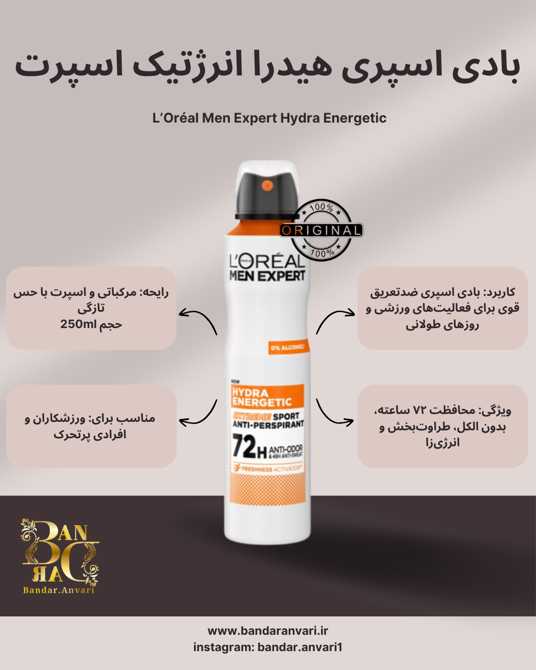 اسپریهای ضدتعریق L’Oréal Men Expert با فرمولهای تخصصی و تکنولوژی Boosted Fresh Tech یا Thermo-Resist طراحی شدهاند تا در شرایط مختلف (ورزش، گرما، فعالیت روزانه، استرس و…) از تعریق بیشازحد جلوگیری کرده و بوی ناخوشایند را خنثی کنند. این محصولات با ماندگاری بالا، رایحههای متنوع و قابلیت خنککنندگی یا ضدحرارت، برای مردانی طراحی شدهاند که به پاکیزگی، ماندگاری بو و حس تازگی اهمیت میدهند.