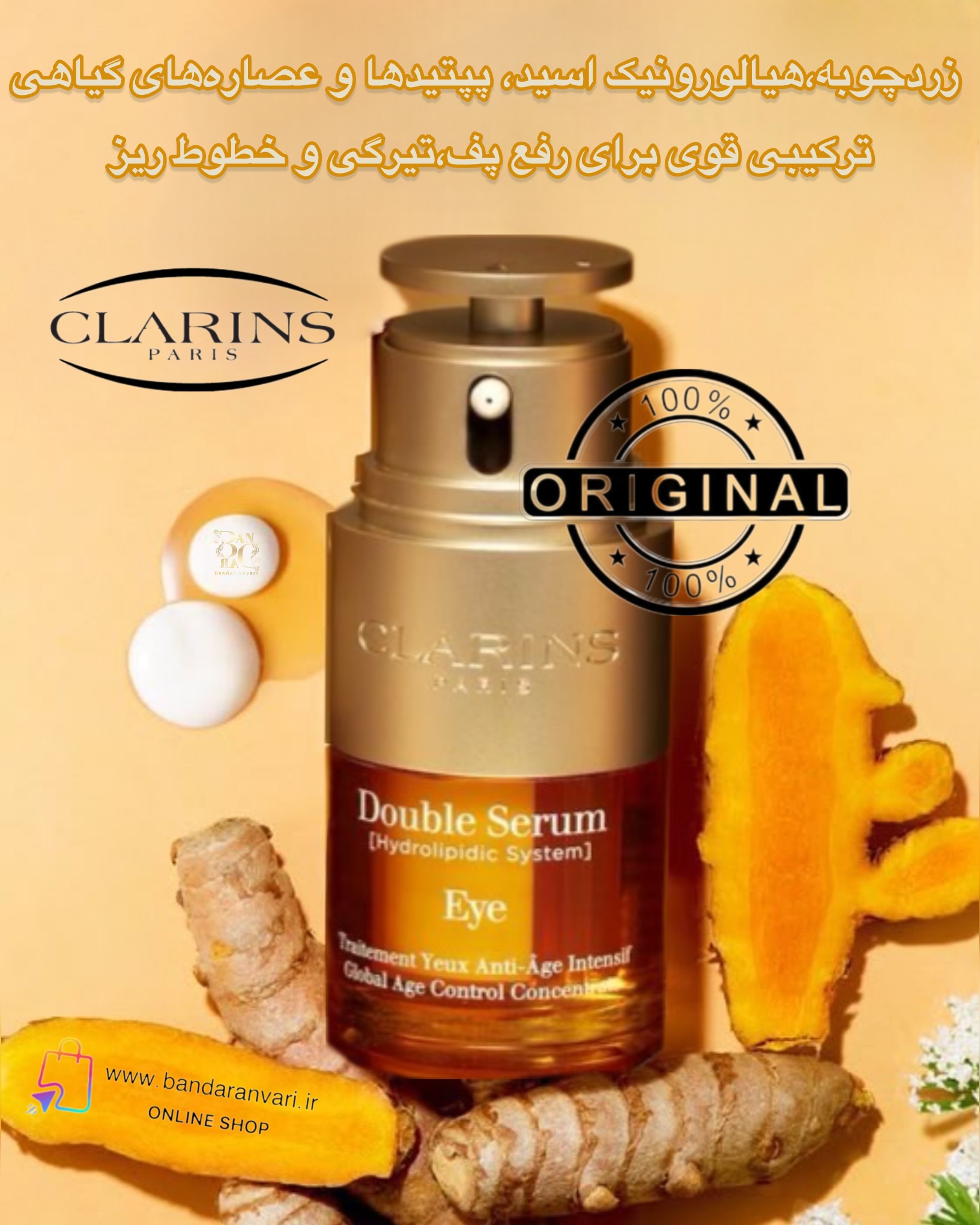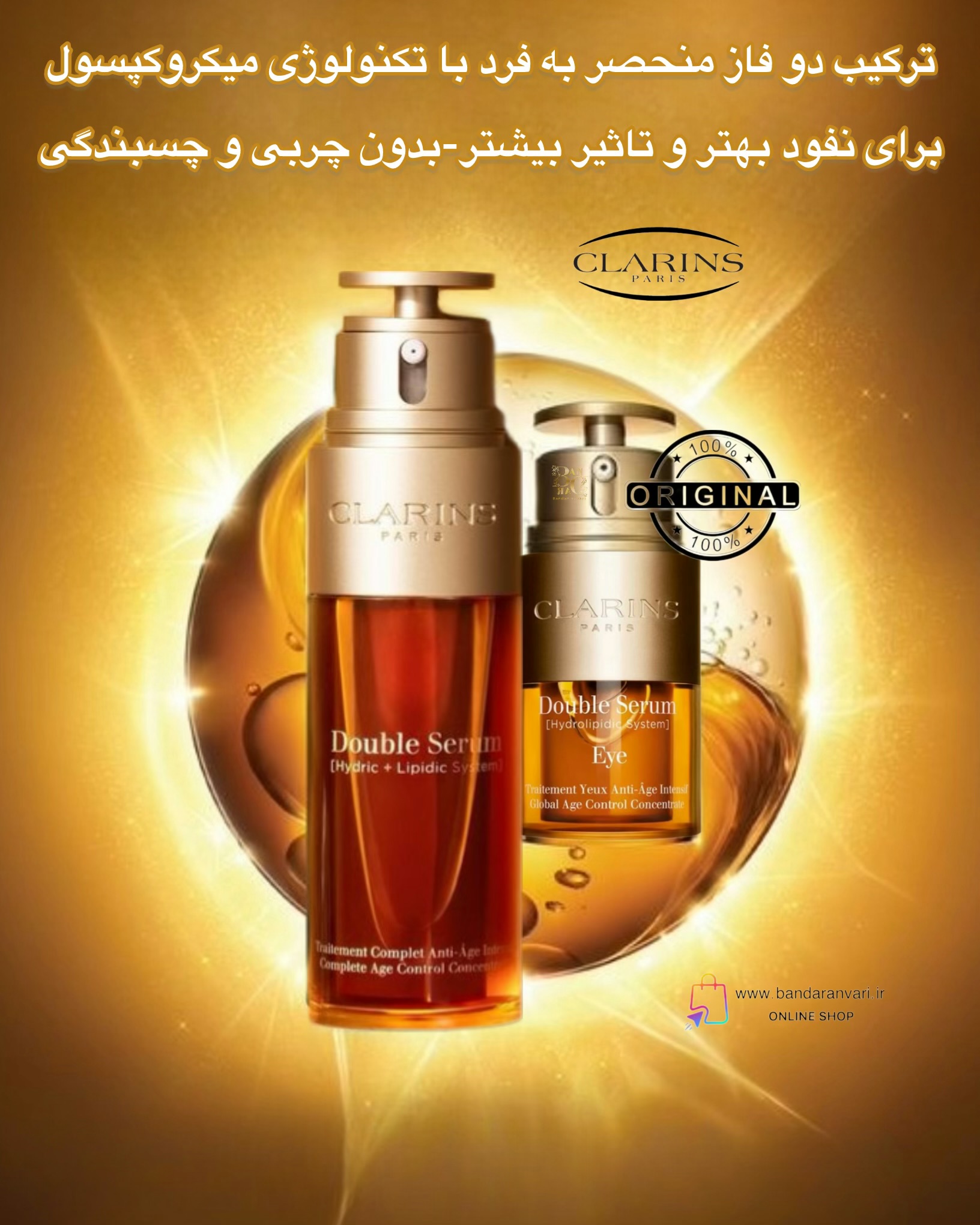 سرم دور چشم دابل سرم کلارنس – ضد پیری، آبرسان و جوانکننده قوی چشمها CLARINS PARIS Double Serum Eye – [Hydrolipidic System] Global Age Control Concentrate – Intensive Anti-Aging Eye Treatment