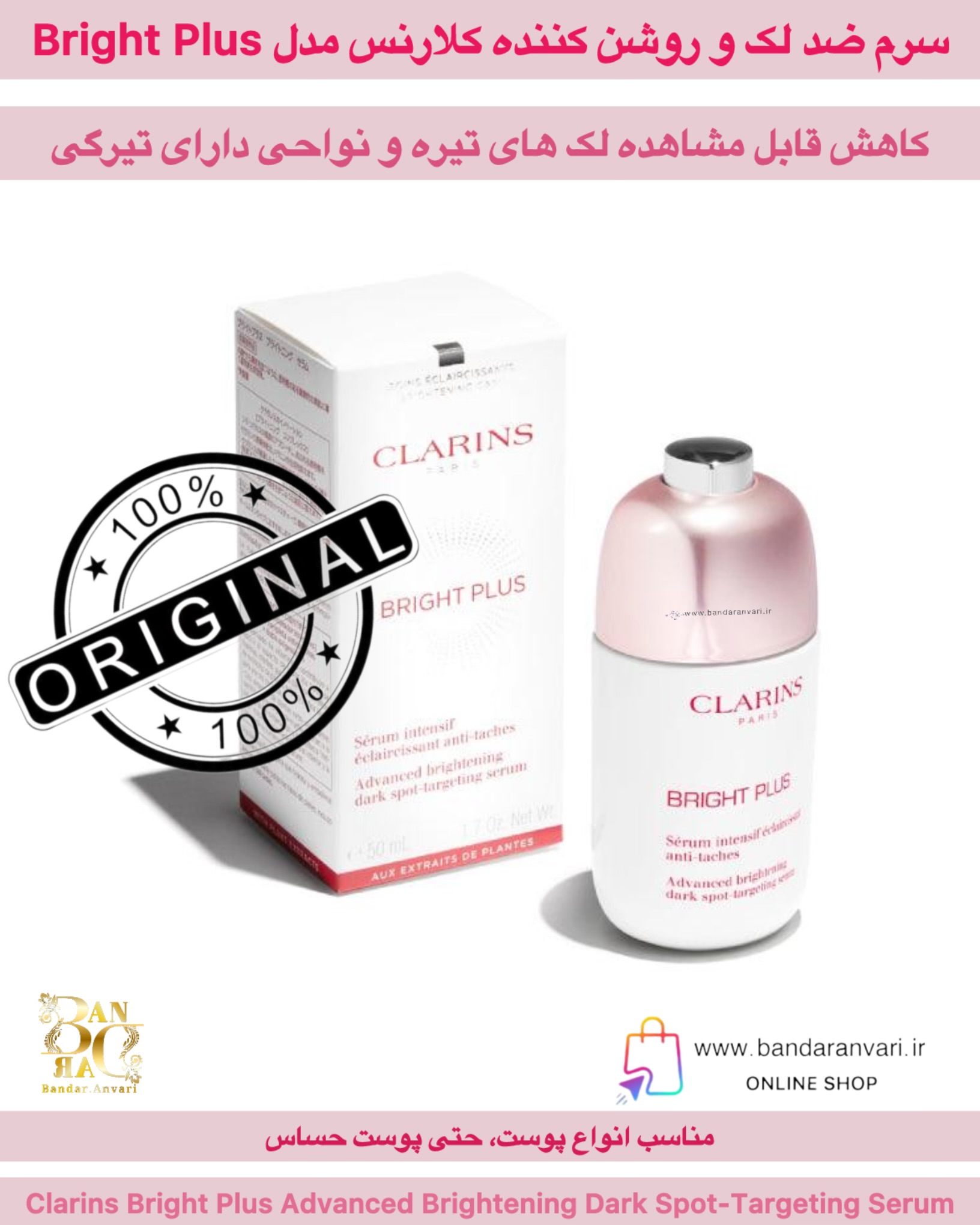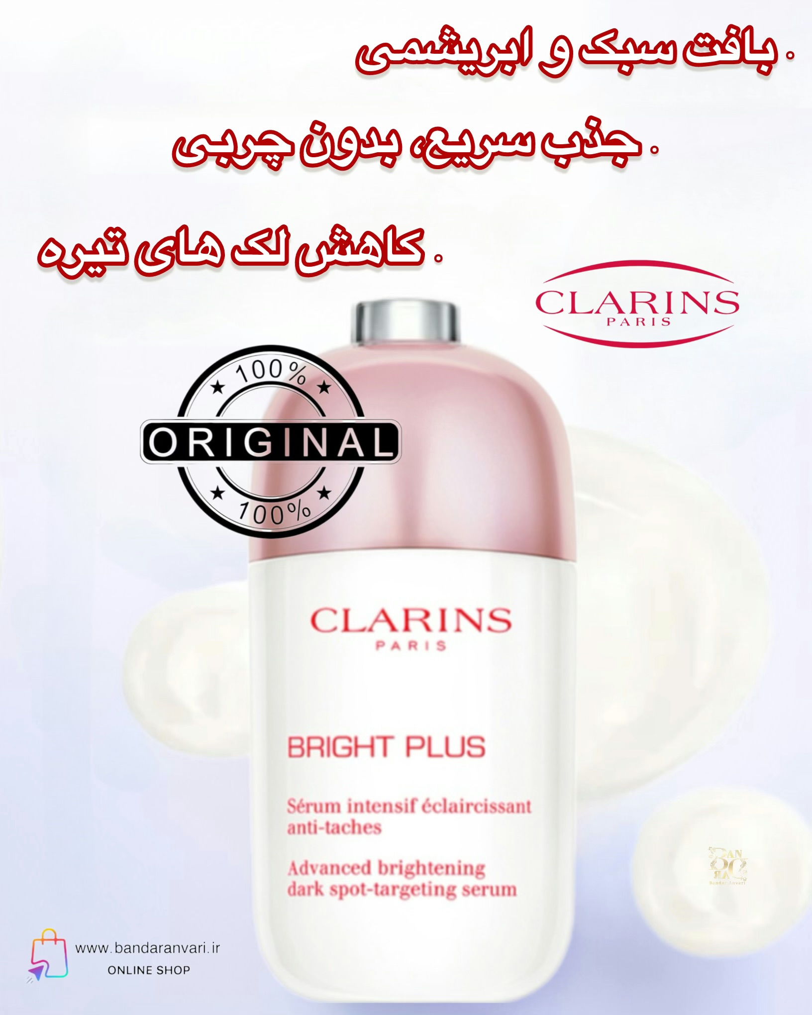 سرم ضدلک و روشنکننده کلارنس مدل Bright Plus – روشنکننده پیشرفته و هدفمند لکهای تیره Clarins Bright Plus Advanced Brightening Dark Spot-Targeting Serum