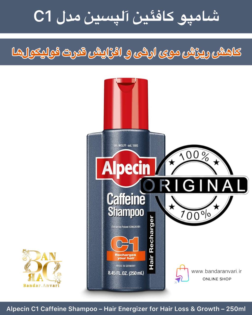 شامپو کافئین آلپسین مدل C1 – ضدریزش و تقویتکننده رشد مو – حجم ۲۵۰ میل Alpecin C1 Caffeine Shampoo – Hair Energizer for Hair Loss & Growth – 250ml