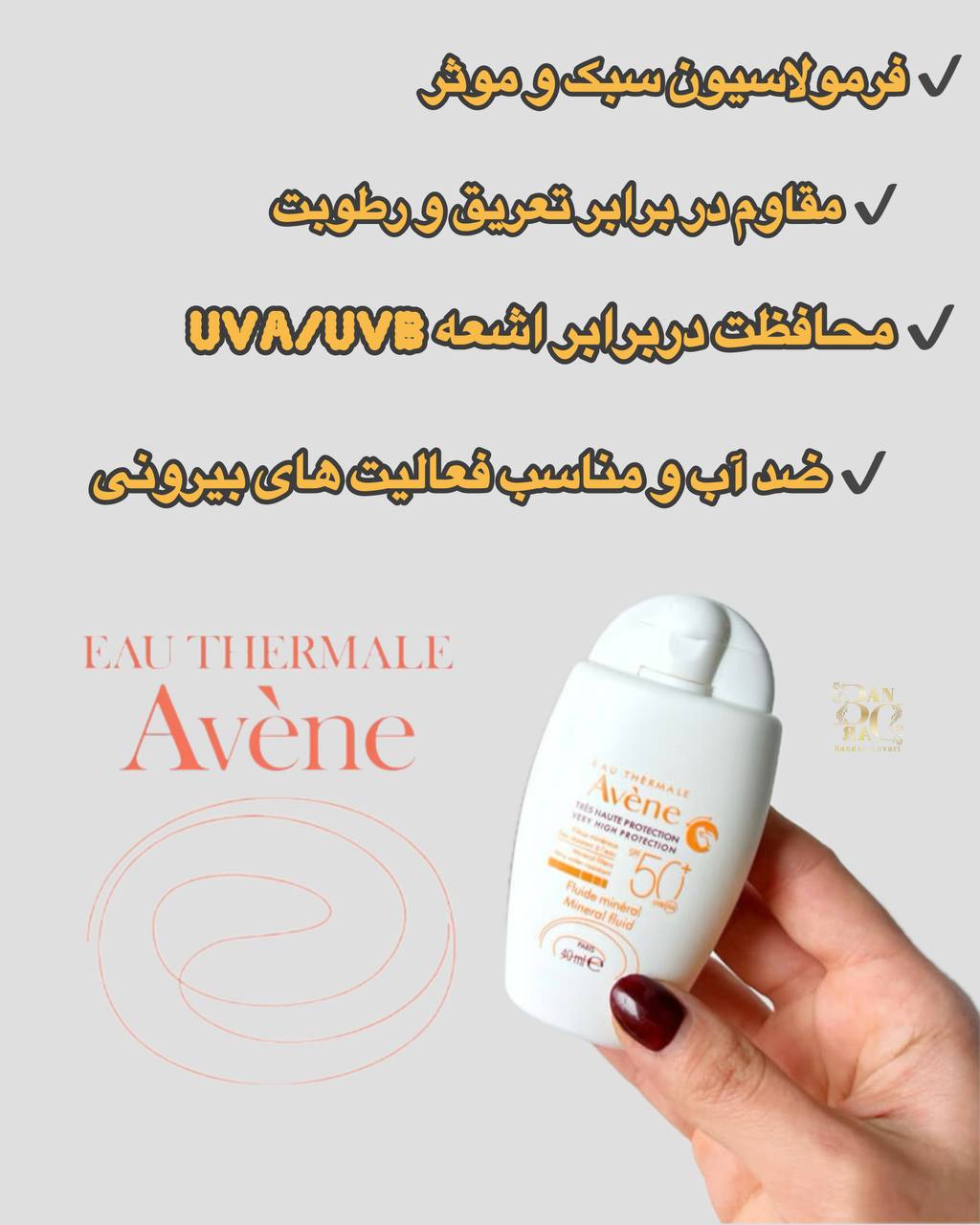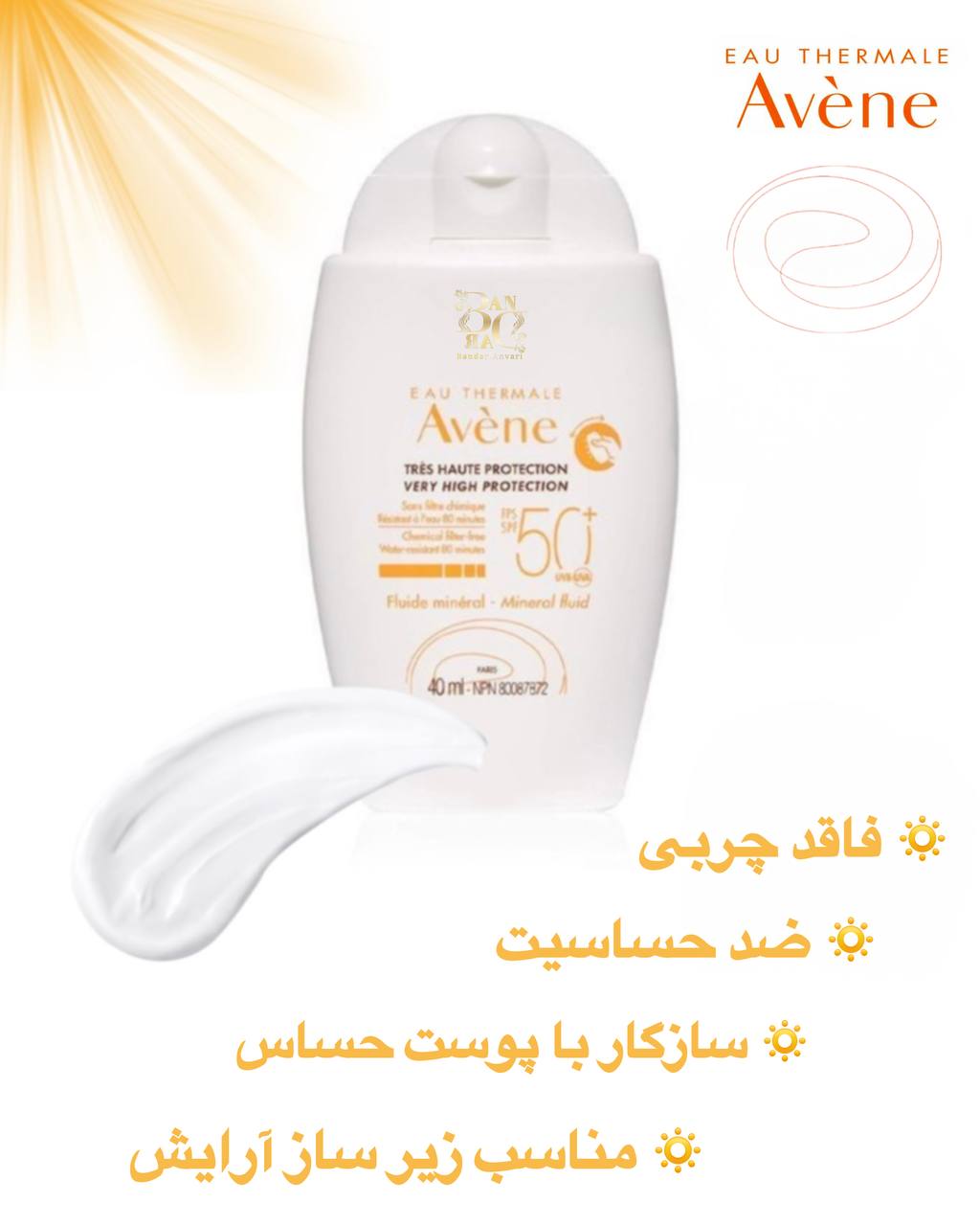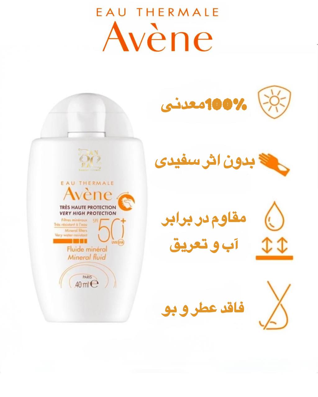 کرم ضد آفتاب Avene Mineral SPF50+ یک محصول کاملاً مینرال (فیزیکی) است که بدون استفاده از فیلترهای شیمیایی، بالاترین سطح محافظت در برابر اشعههای UVA و UVB را برای پوست فراهم میکند. این محصول مخصوص افرادی با پوست بسیار حساس، واکنشپذیر، آسیبدیده یا تحت درمانهای پوستی مانند لیزر یا پیلینگ طراحی شده است.