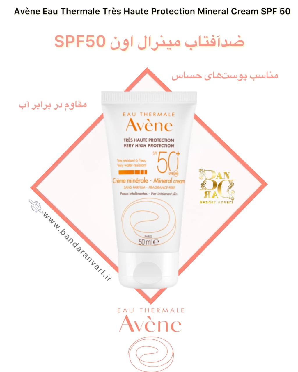 ضدآفتاب مینرال SPF50 اون – مناسب پوستهای حساس و غیرقابل تحمل، بدون عطر و مقاوم در برابر آب Avène Eau Thermale Très Haute Protection Mineral Cream SPF 50 – Very High Protection – Very Water-Resistant – Fragrance-Free – For Intolerant Skin