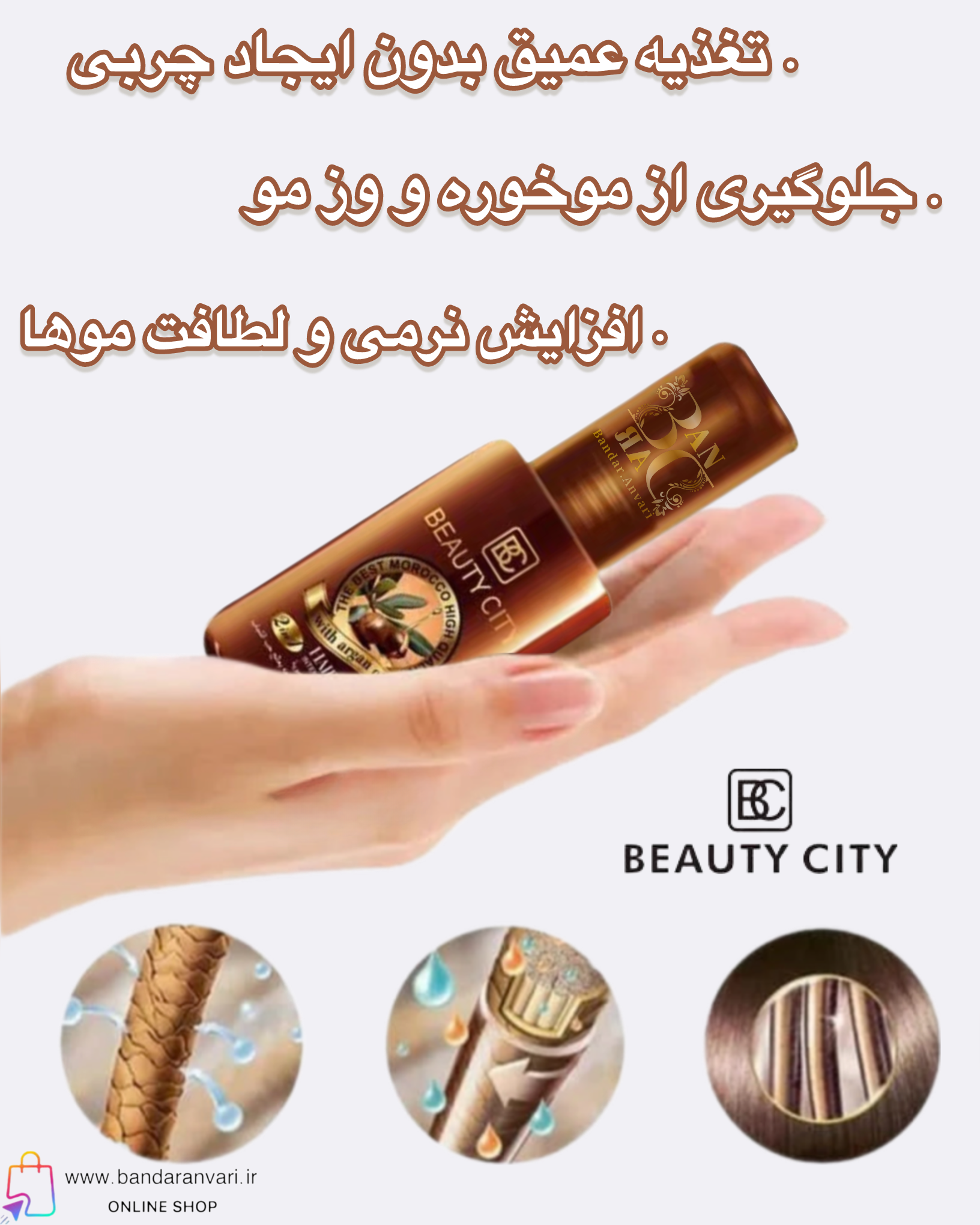 سرم موی دوکاره آرگان بیوتی سیتی Beauty City Argan Hair Serum – Dual Action Formula