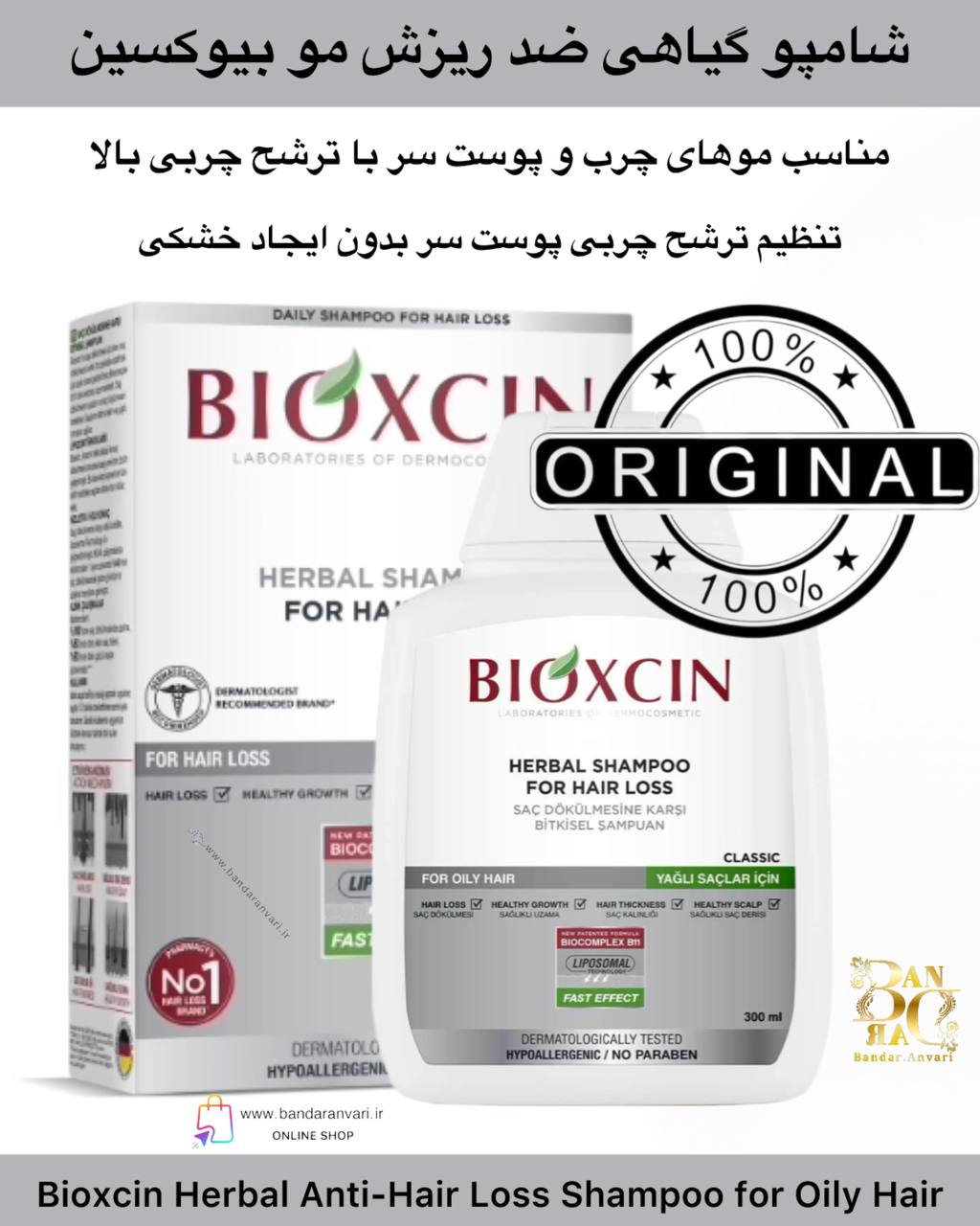 شامپو گیاهی بیوکسین ضد ریزش مو مخصوص موهای چرب Bioxcin Herbal Anti-Hair Loss Shampoo for Oily Hair