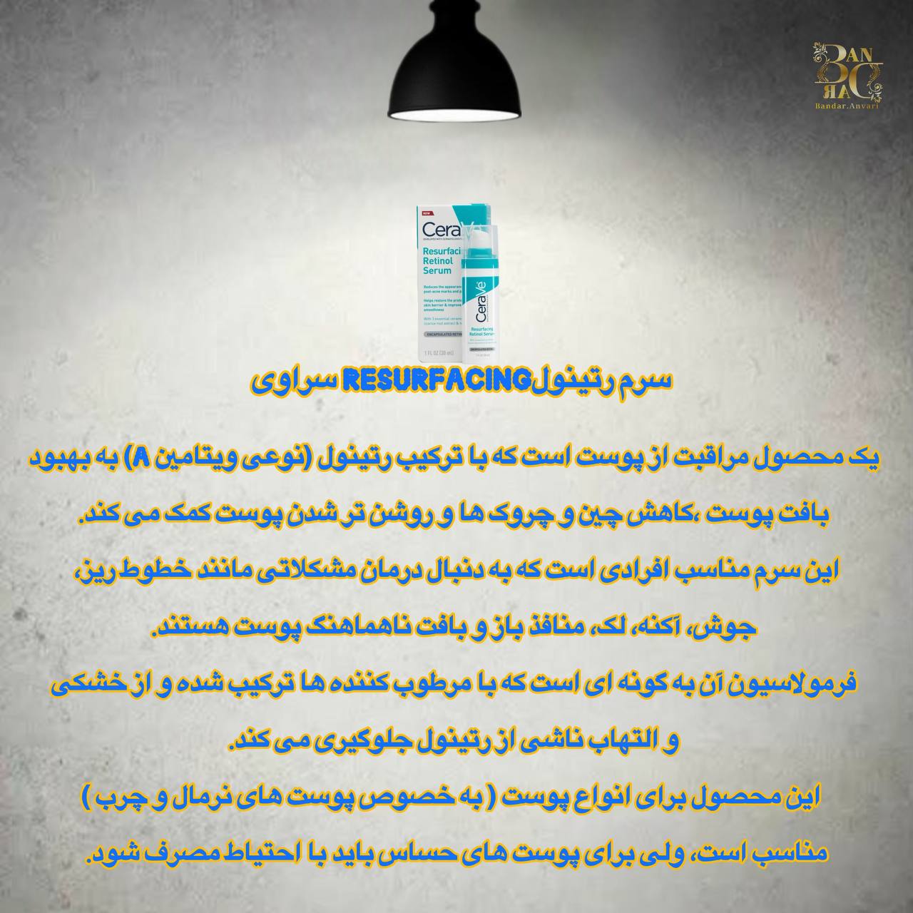 سرم رتینول بازسازیکننده سراوی مدل Cerave Resurfacing Retinol Serum – روشنکننده، یکنواختکننده و کاهشدهنده جای جوش و لک