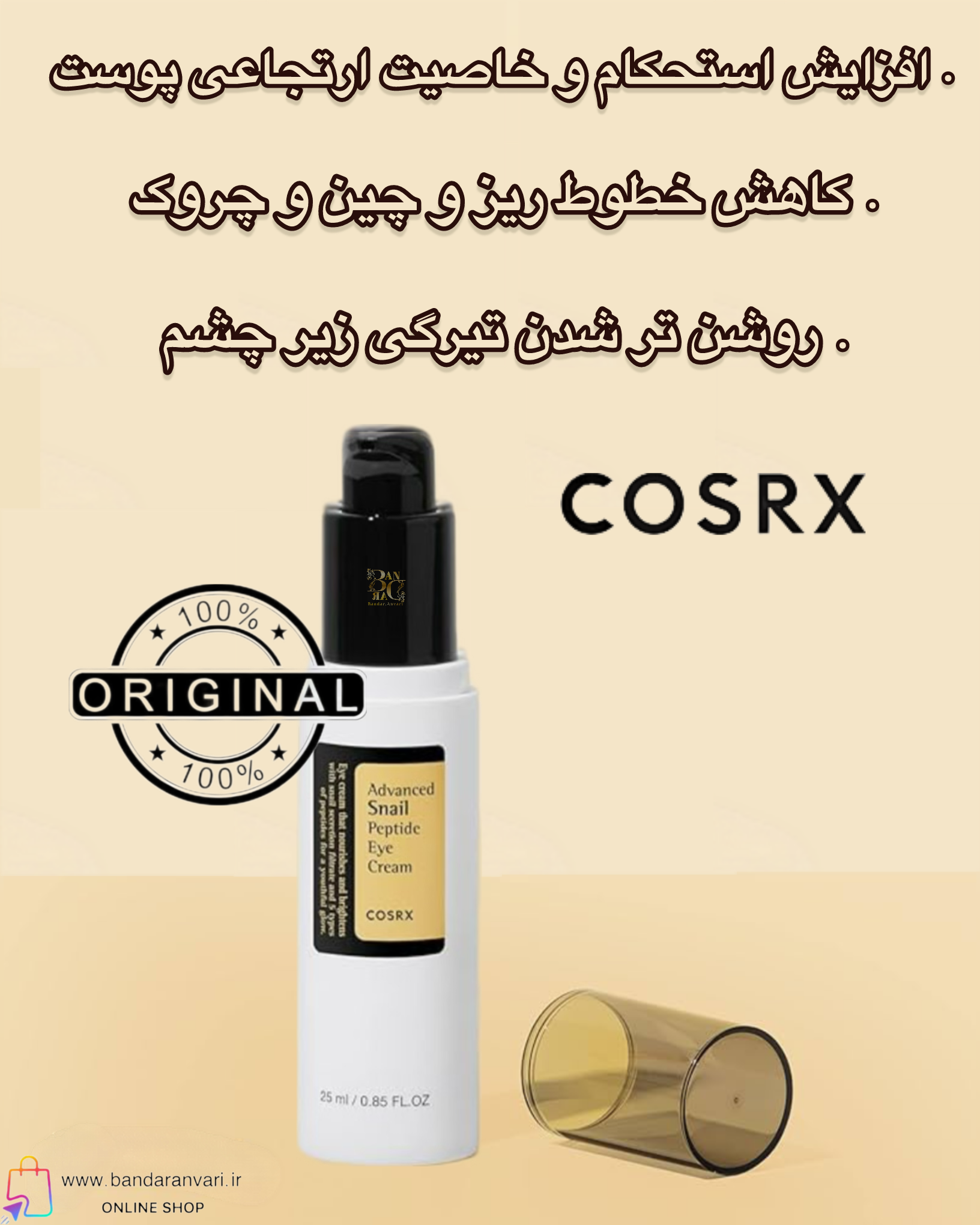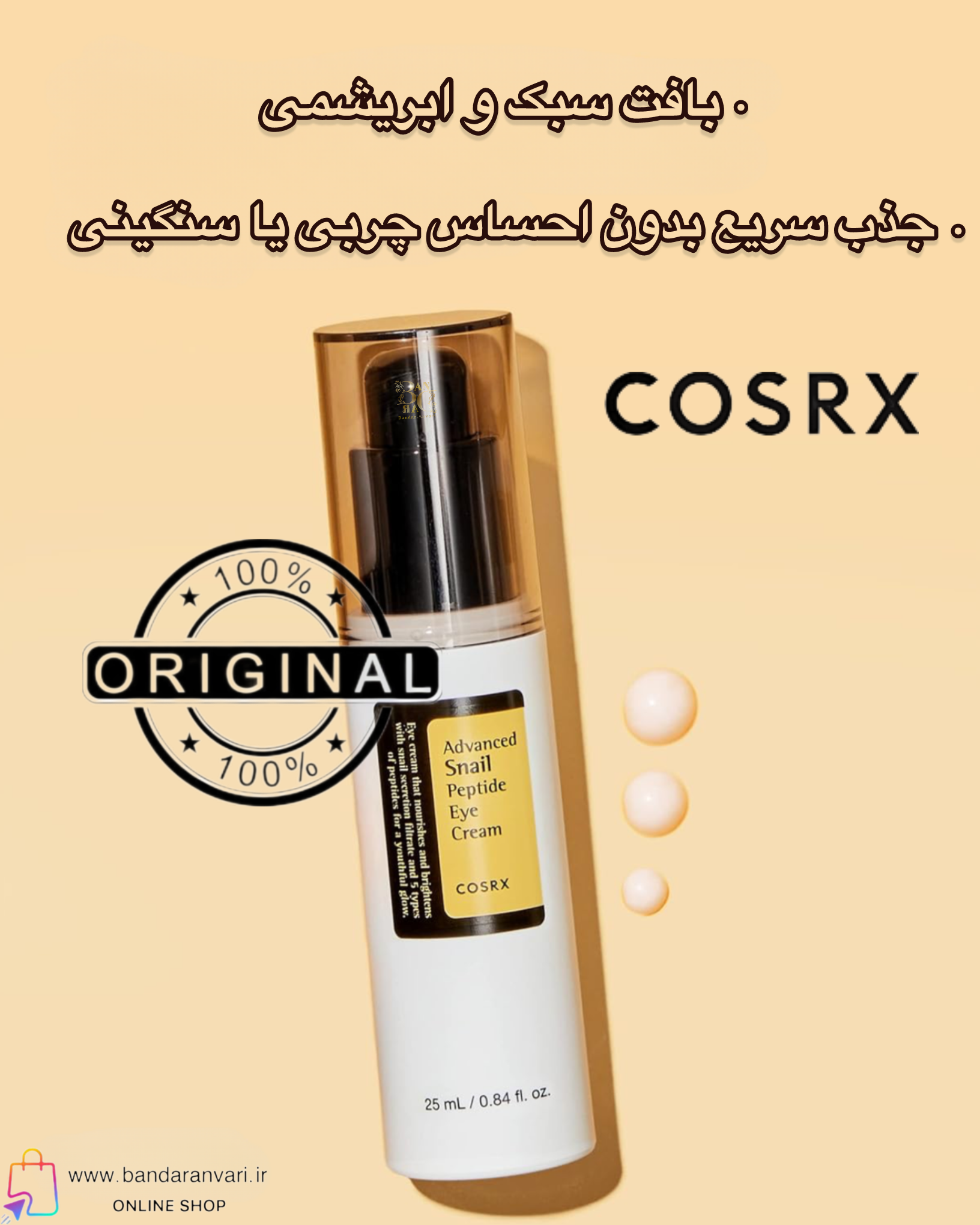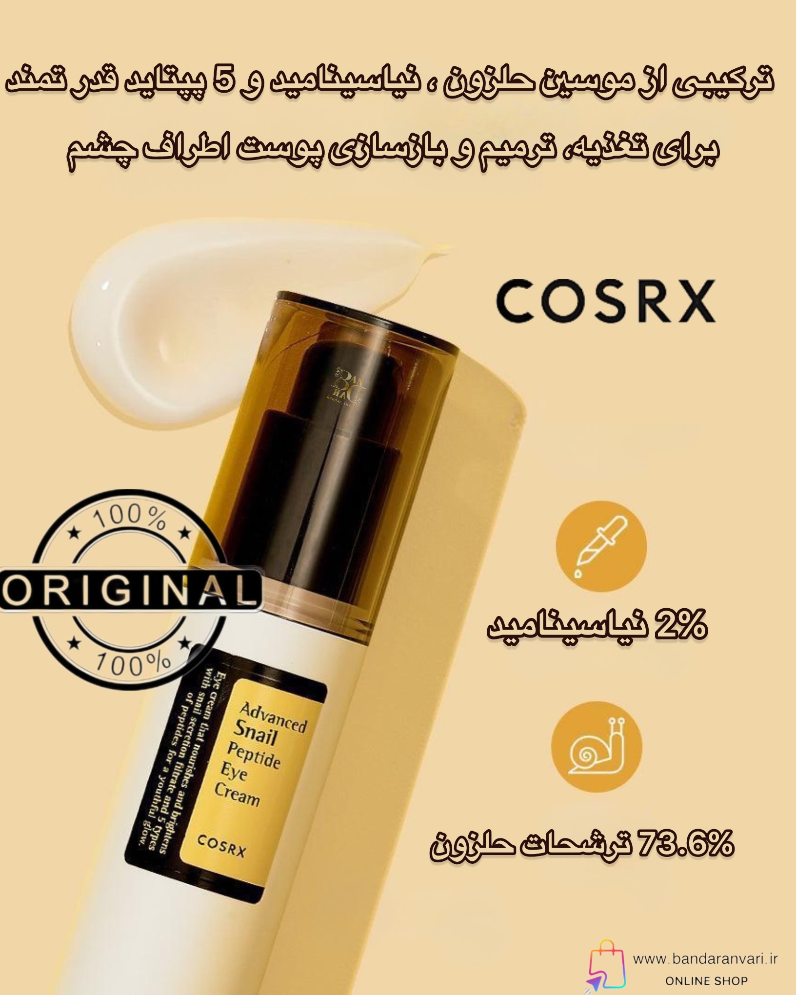 کرم دور چشم ضدچروک کوزارکس مدل اسنِیل پپتاید – روشنکننده و بازسازیکننده با مخاط حلزون و پپتاید COSRX Advanced Snail Peptide Eye Cream
