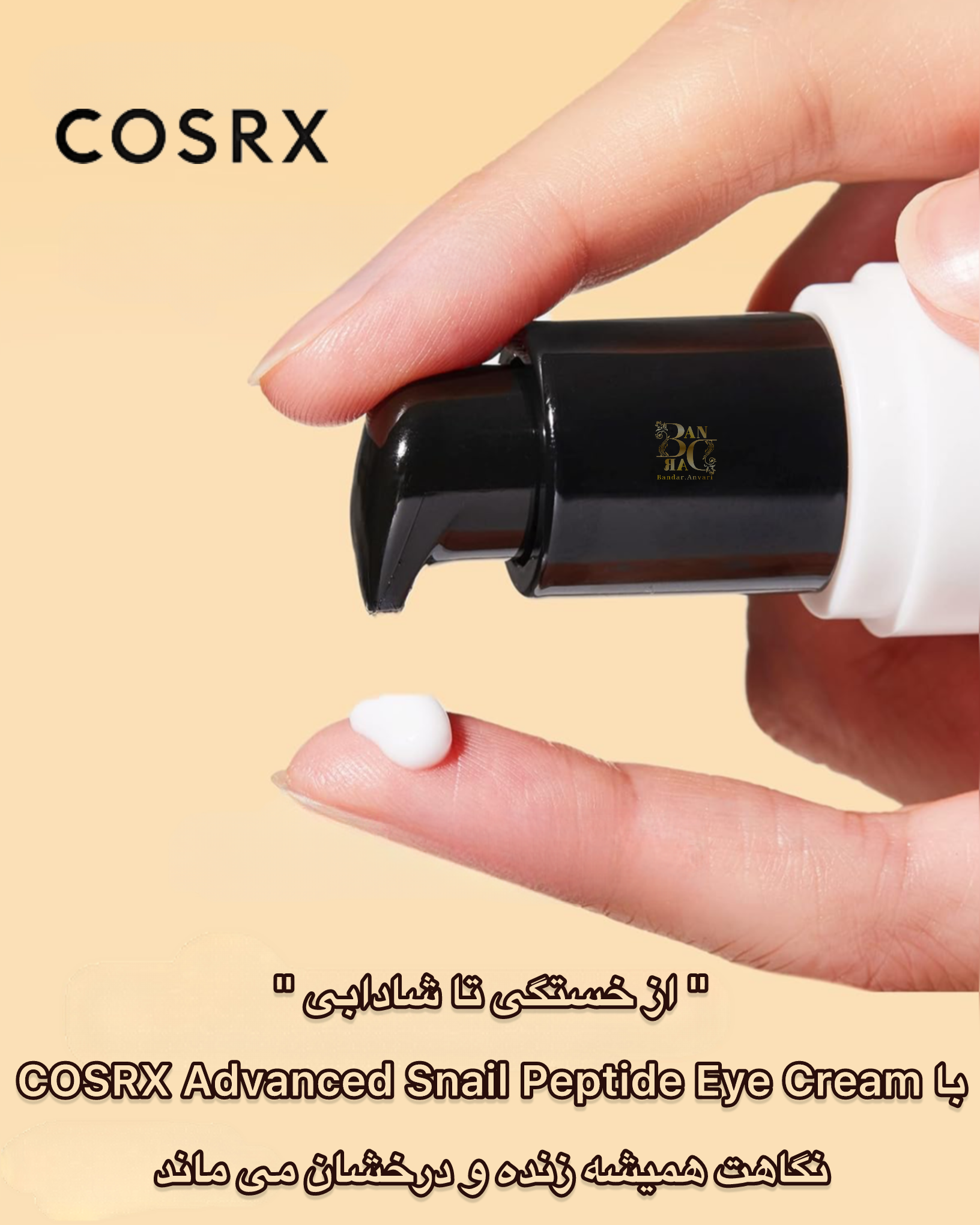کرم دور چشم COSRX Advanced Snail Peptide Eye Cream یک محصول تخصصی برای مراقبت از پوست حساس اطراف چشم است که با ترکیب مؤثر مخاط حلزون (Snail Secretion Filtrate) به میزان ۷۲٪، ۵ نوع پپتاید و نیاسینامید، به کاهش چینوچروک، تیرگی و پف دور چشم کمک میکند.