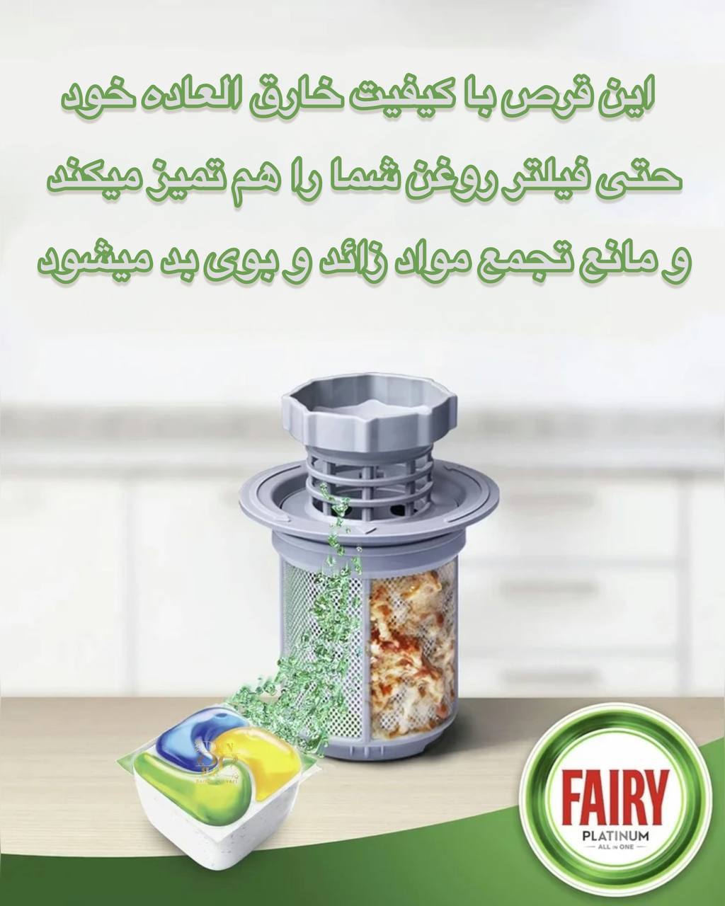 قرص ماشین ظرفشویی Fairy Platinum – تمیزی عمیق و درخشان با یک قرص