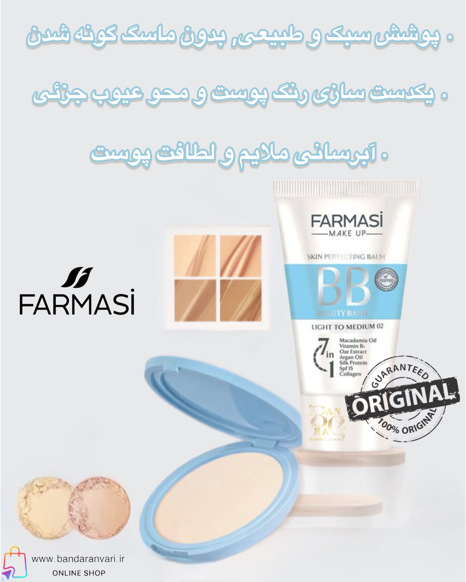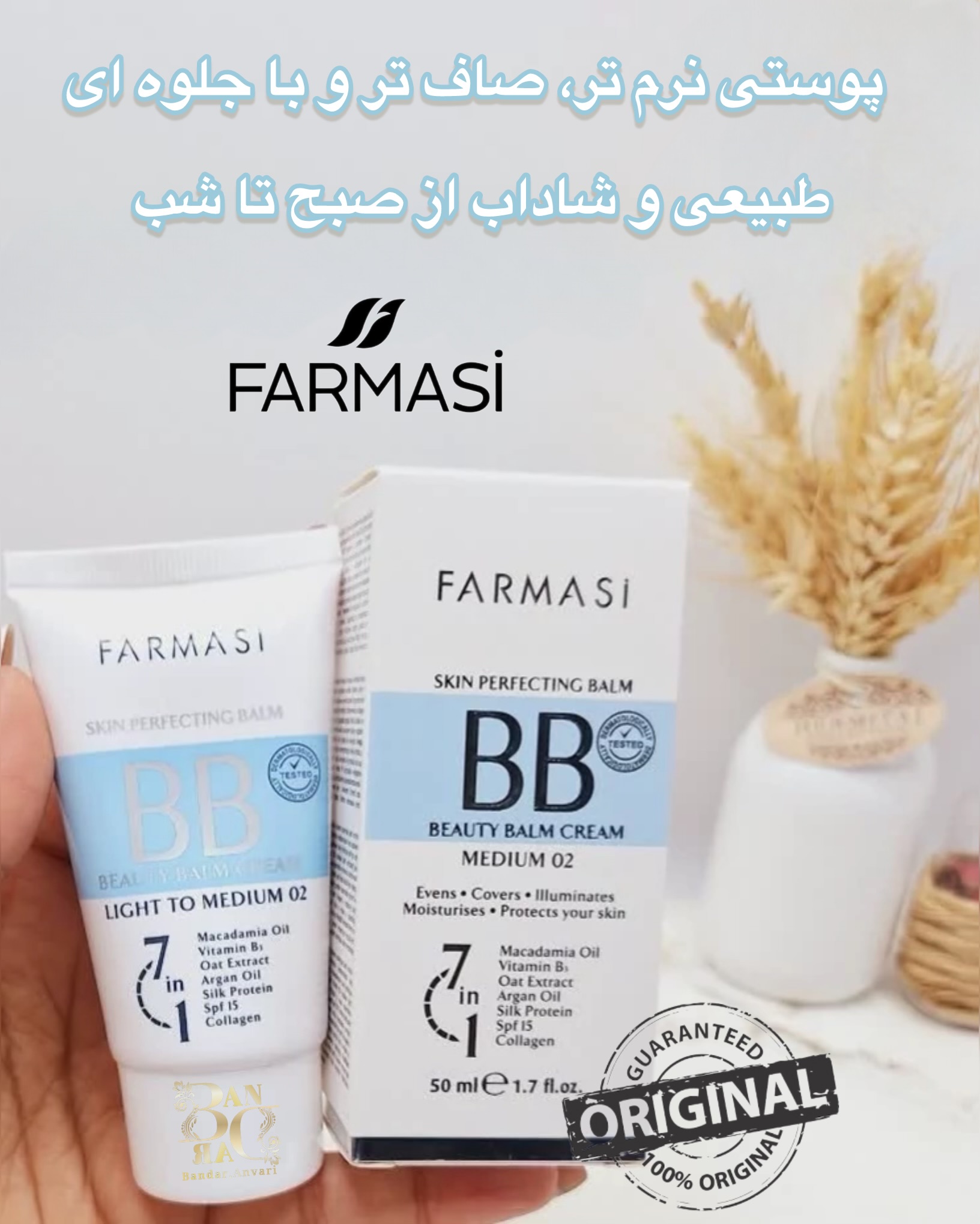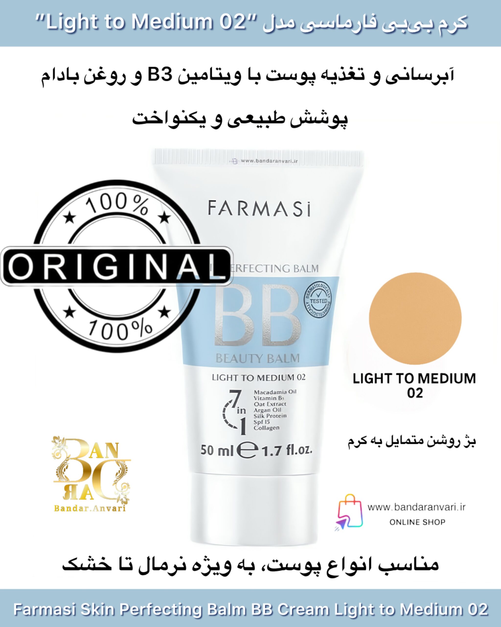 کرم بیبی فارماسی مدل “Light to Medium 02” حجم 50 میل Farmasi Skin Perfecting Balm BB Cream Light to Medium 02 – 50ml