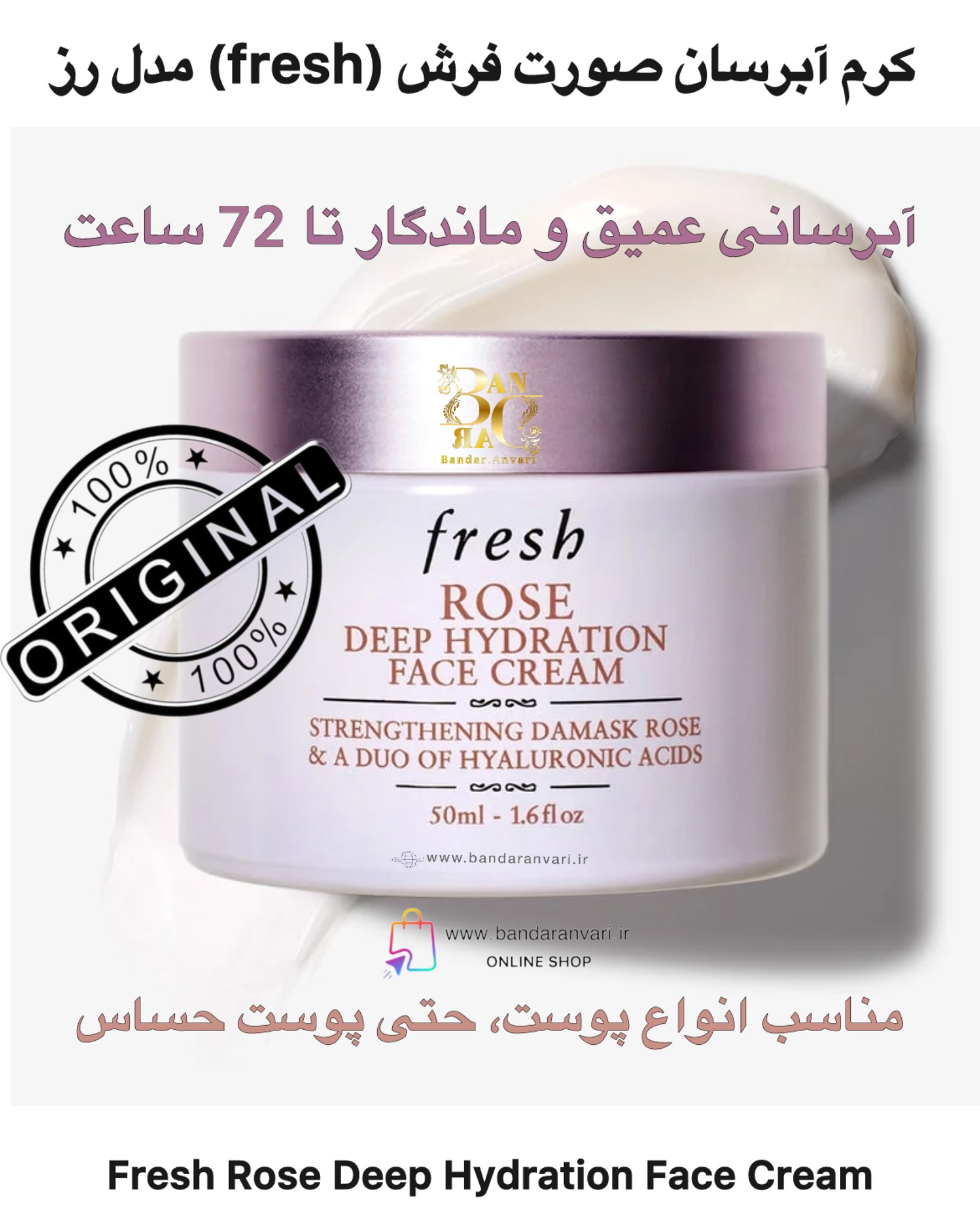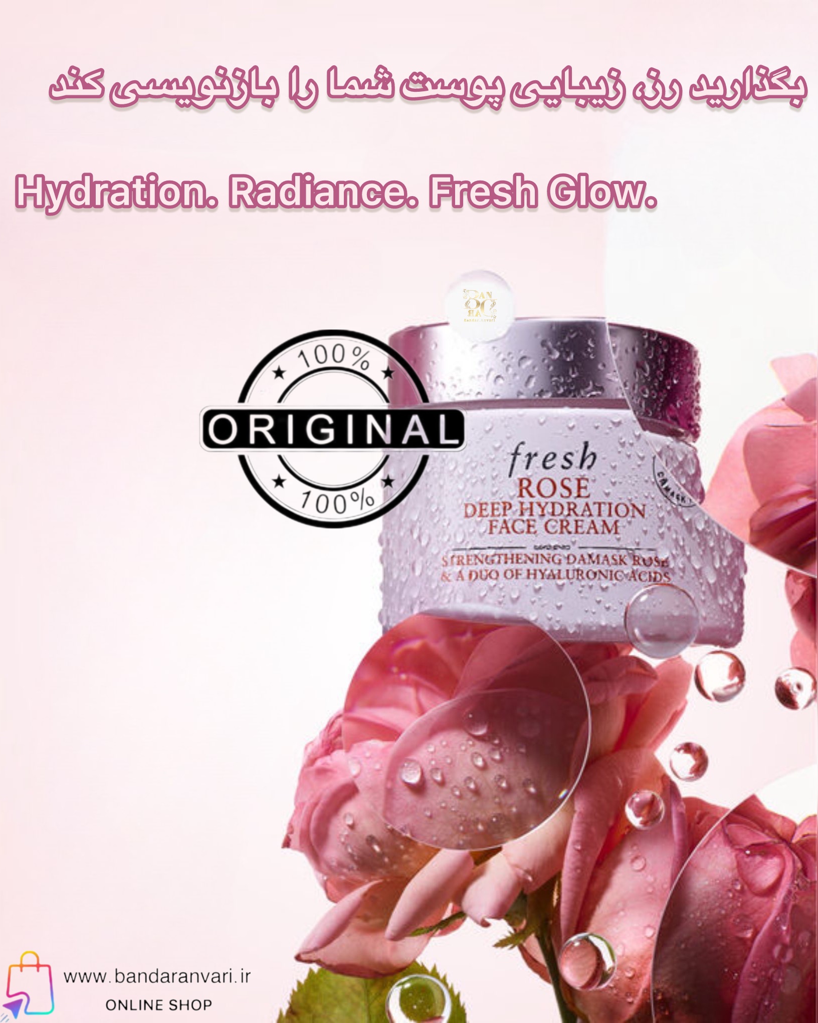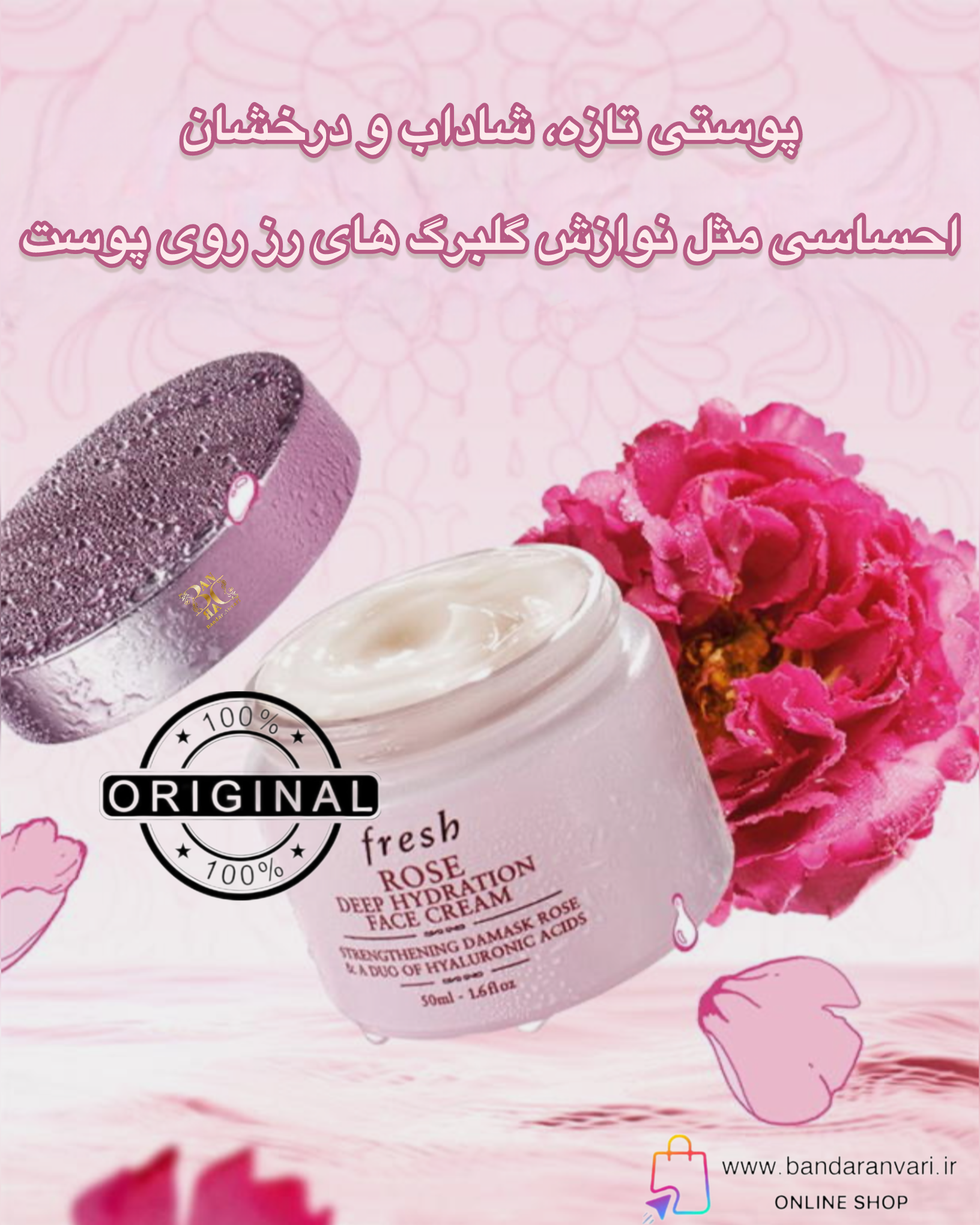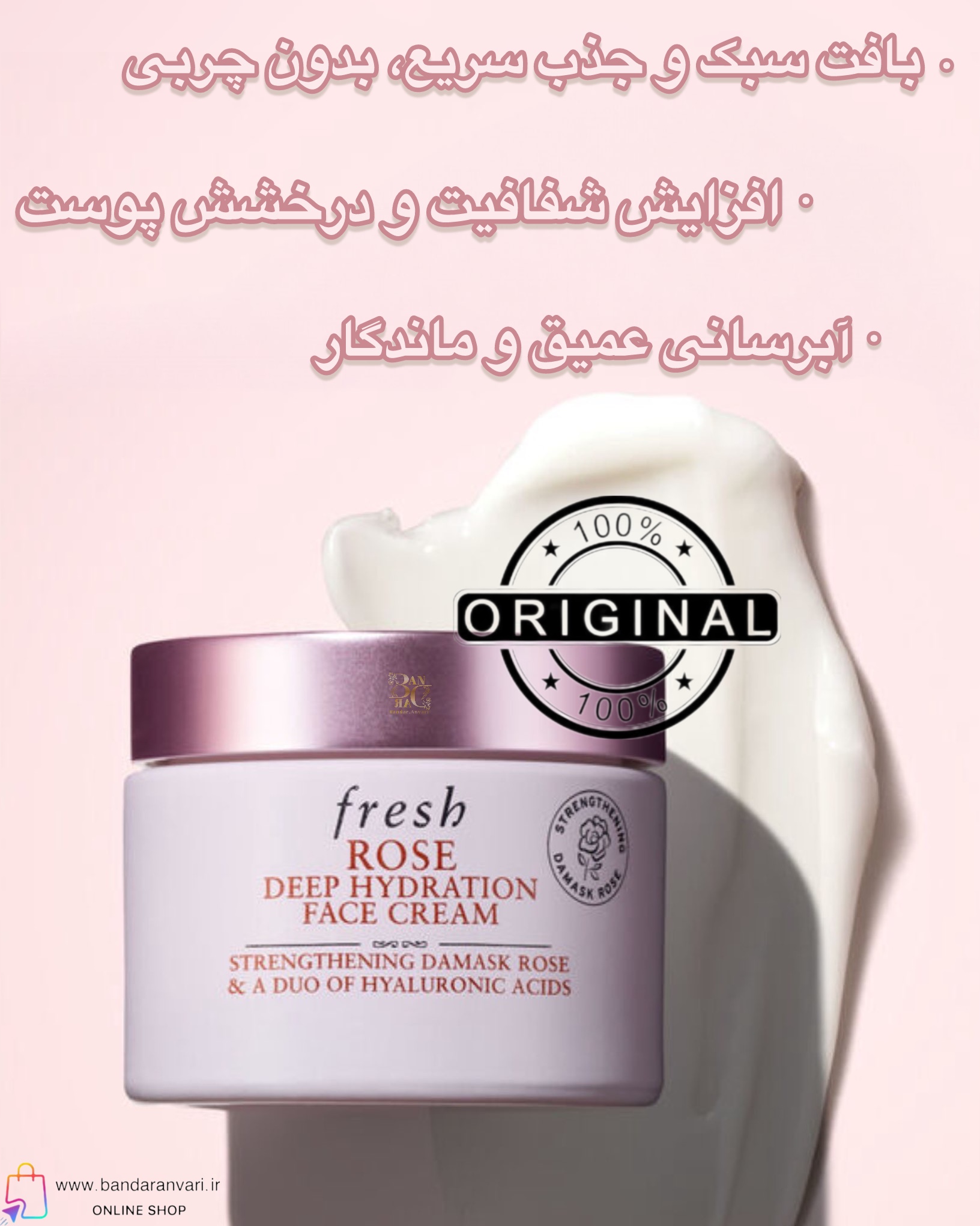 کرم آبرسان عمیق صورت فرش مدل رز – حاوی گل رز دمشقی و دو نوع هیالورونیک اسید Fresh Rose Deep Hydration Face Cream – With Strengthening Damask Rose & Duo of Hyaluronic Acids