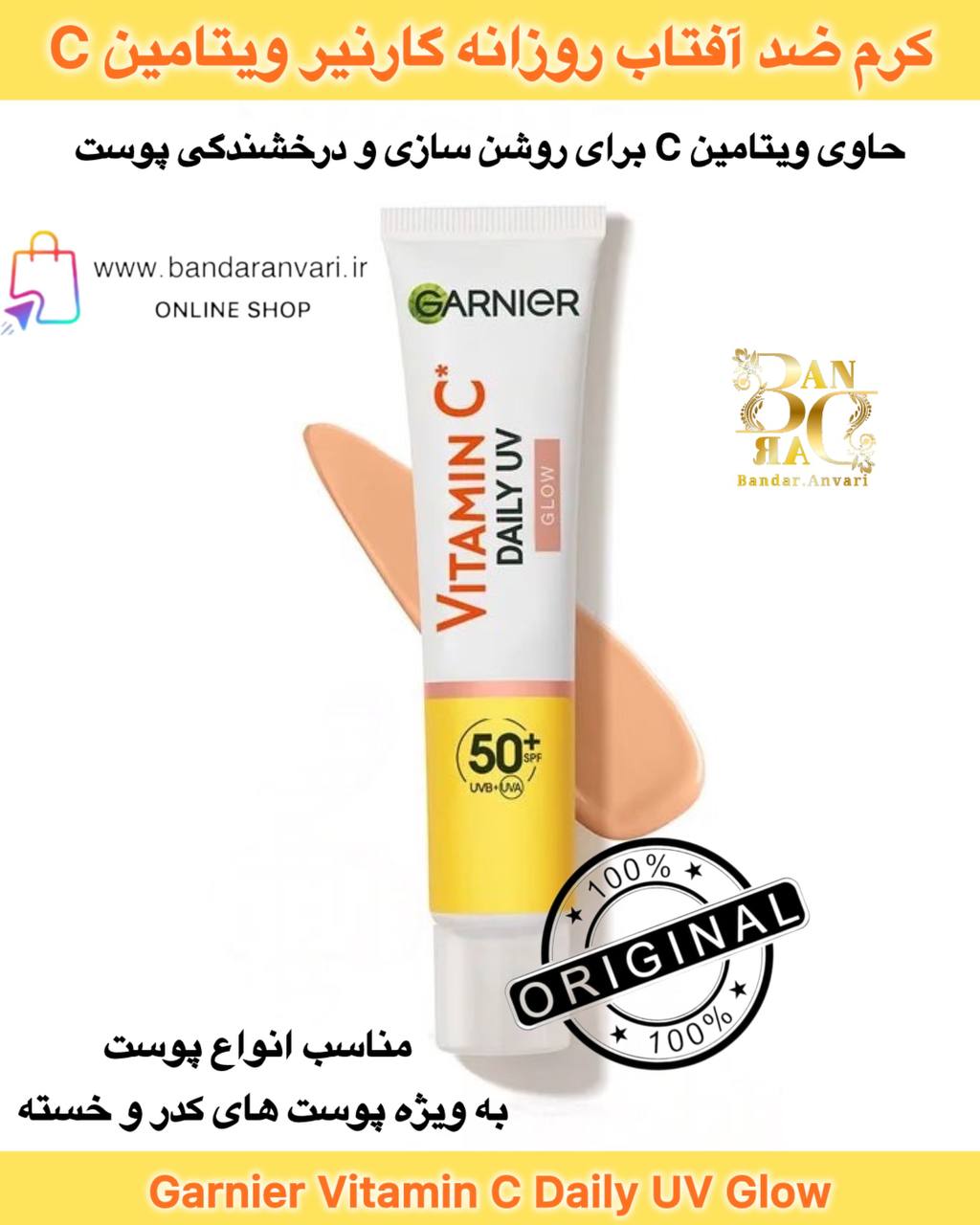 ضد آفتاب روزانه گارنیر ویتامین C با جلوه درخشان و محافظت UV Garnier Vitamin C Daily UV Glow – Brightening Sunscreen with SPF and Antioxidants*