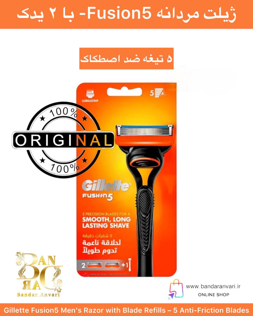 ژیلت مردانه Fusion5 همراه با ۲تیغه یدکی – اصلاح نزدیک و روان Gillette Fusion5 Men’s Razor with Blade Refills – 5 Anti-Friction Blades