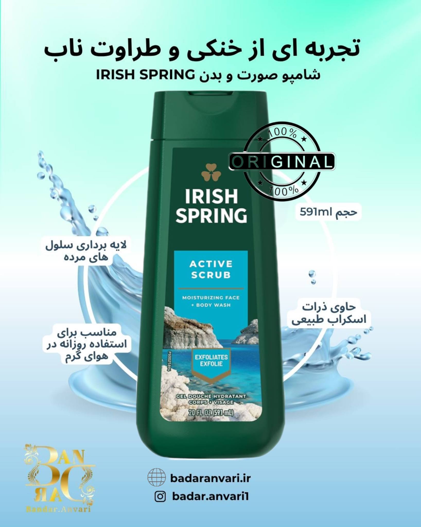 محصولی از برند آمریکایی آیرش اسپرینگ با ترکیبی چندمنظوره برای شستوشوی کامل بدن و صورت، فاقد پارابن و با رایحهای ماندگار که انرژی و تازگی را در تمام طول روز حفظ میکند.