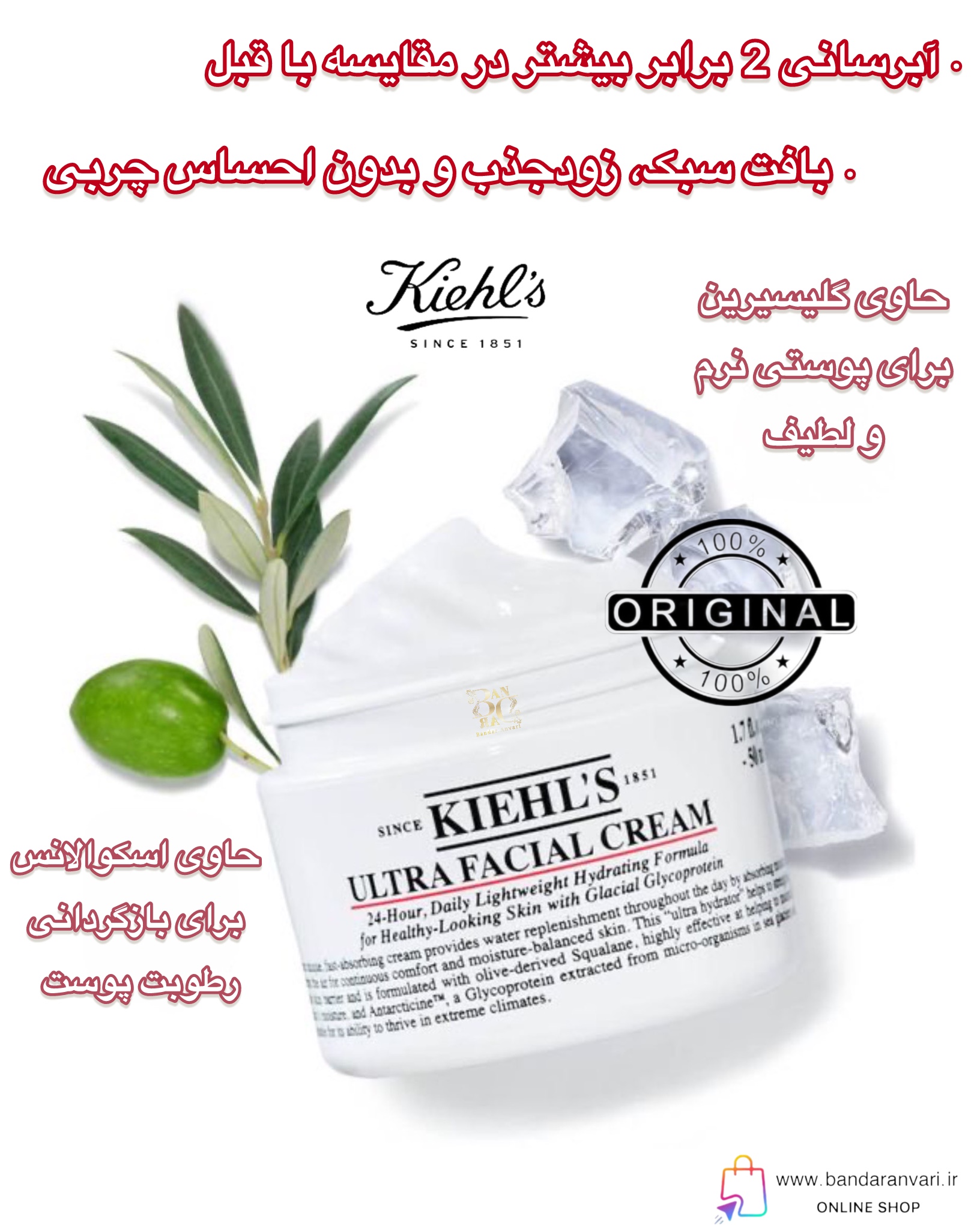 کرم آبرسان روزانه کیلز مدل Ultra Facial – رطوبترسانی ۲۴ ساعته با اسکوالان و گلیکوپروتئین یخی Kiehl’s Ultra Facial Cream – 24-Hour Lightweight Hydrating Moisturizer with 4.5% Squalane & Glacial Glycoprotein