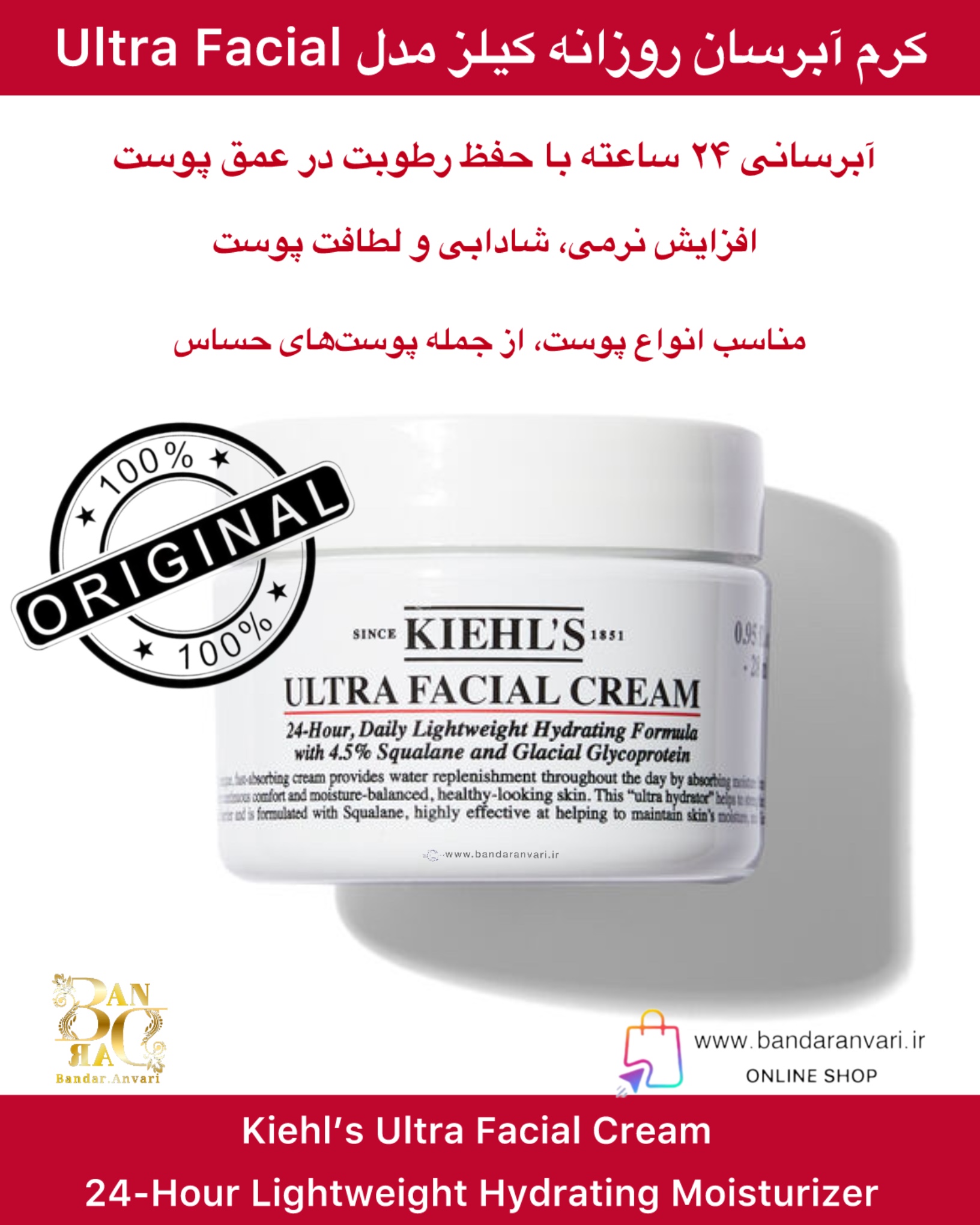 کرم آبرسان Ultra Facial از برند کیلز یکی از پرفروشترین مرطوبکنندههای این برند است که با فرمول سبک، زودجذب و قدرت آبرسانی بالا، برای استفادهی روزانه در تمام فصول طراحی شده است. این کرم، پوست را بهطور مداوم تا ۲۴ ساعت آبرسانی میکند و با ترکیبات کلیدی خود مثل ۴.۵٪ اسکوالان و گلیکوپروتئین یخی به حفظ تعادل رطوبتی پوست و تقویت سد دفاعی آن کمک میکند.