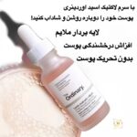 – لایهبرداری ملایم: لاکتیک اسید به آرامی سطح پوست را لایهبرداری کرده و به کاهش چین و چروک و لکههای تیره کمک میکند.