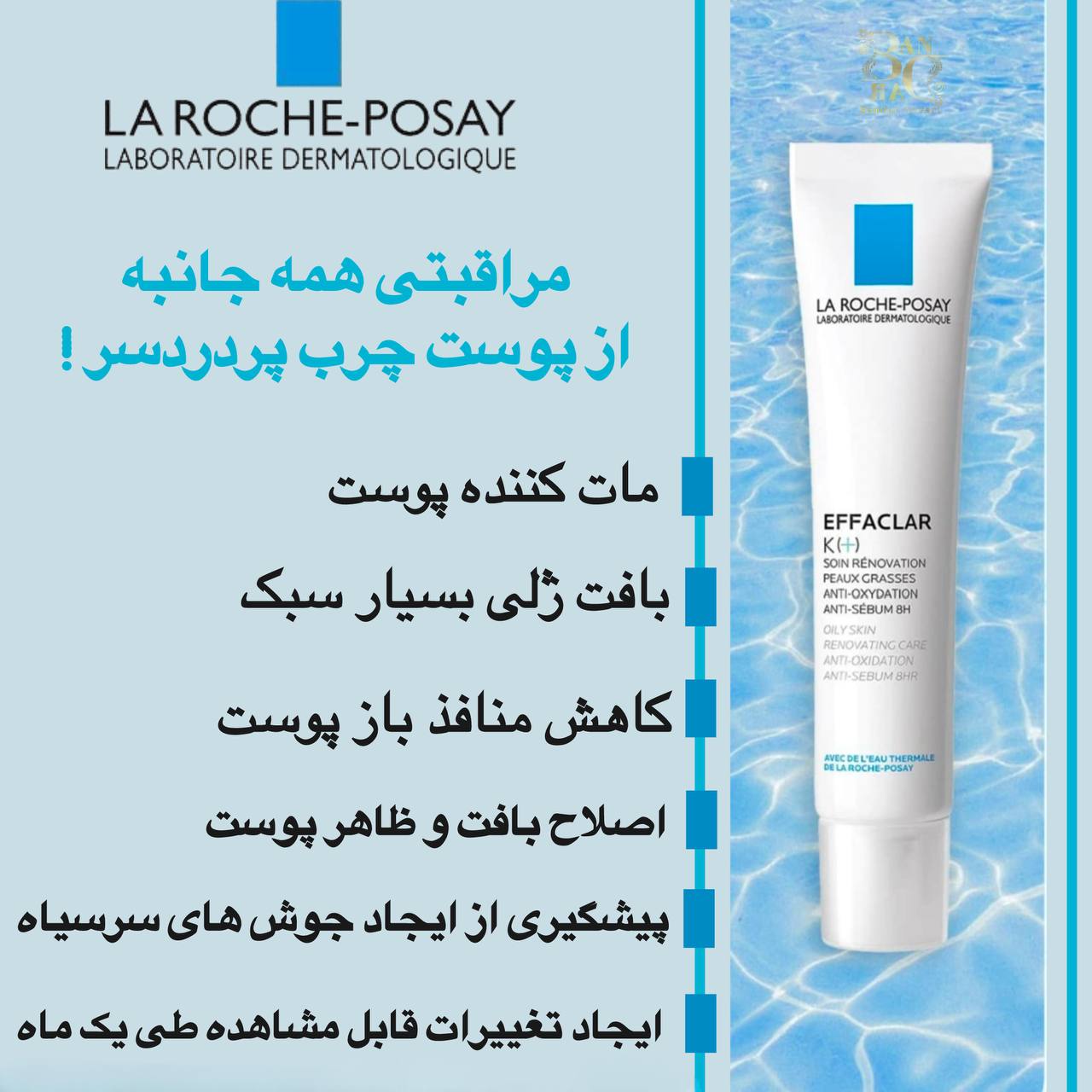 EFFACLAR K (+) لاروش پوزای؛ کرم چندکاره برای کنترل چربی، رفع جوش‌های زیرپوستی و روشن‌سازی پوست چرب با بافت سبک و جذب سریع.
