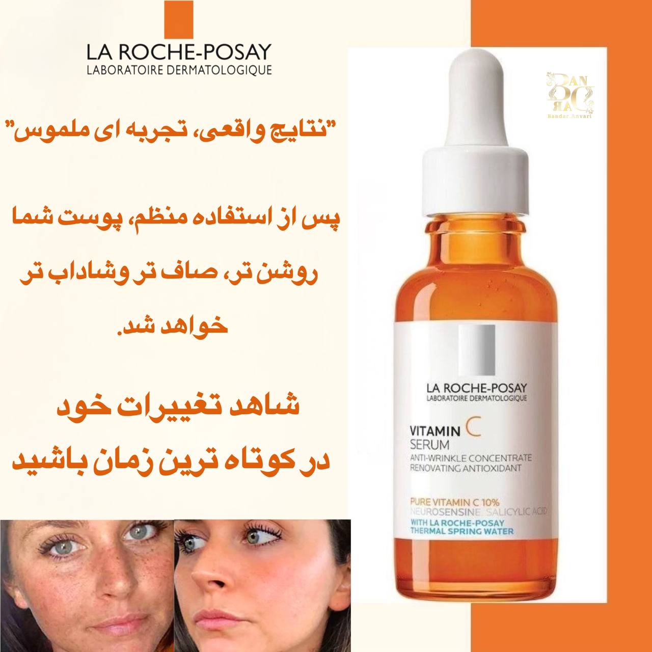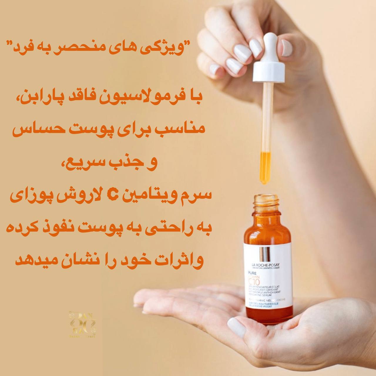 سرم ویتامین C لاروش پوزای با ویتامین C خالص 10٪، روشنکننده، ضدچروک و افزایشدهنده شادابی پوست. مناسب برای انواع پوست، حتی حساس.