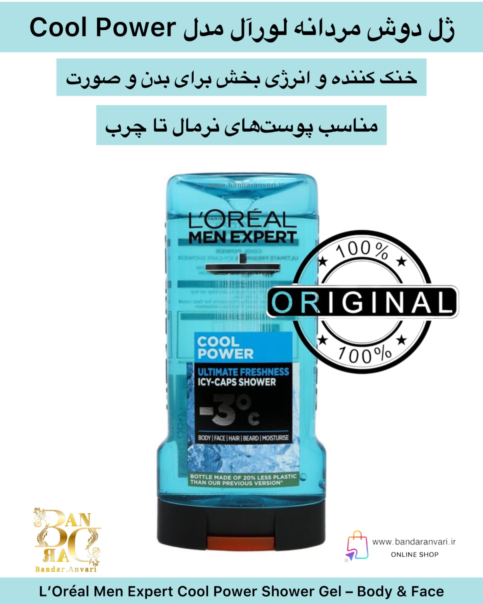 ژل دوش مردانه لورآل مدل Cool Power – خنک کننده و انرژیبخش برای بدن و صورت L’Oréal Men Expert Cool Power Shower Gel – Body & Face