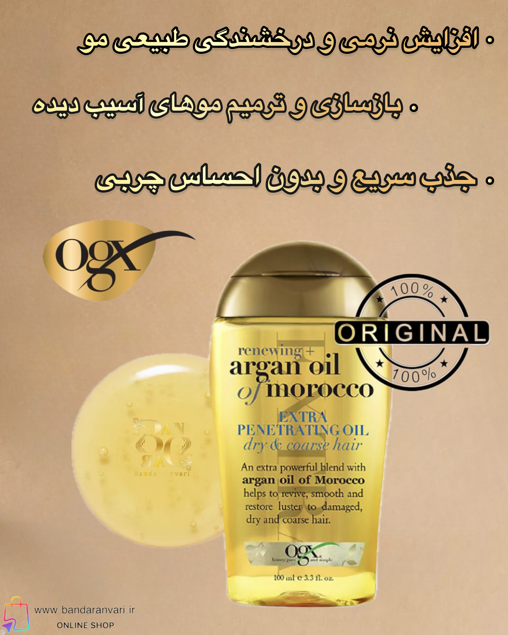 روغن آرگان مراکشی OGX برای موهای خشک و زبر OGX Renewing Argan Oil of Morocco Extra Penetrating Oil