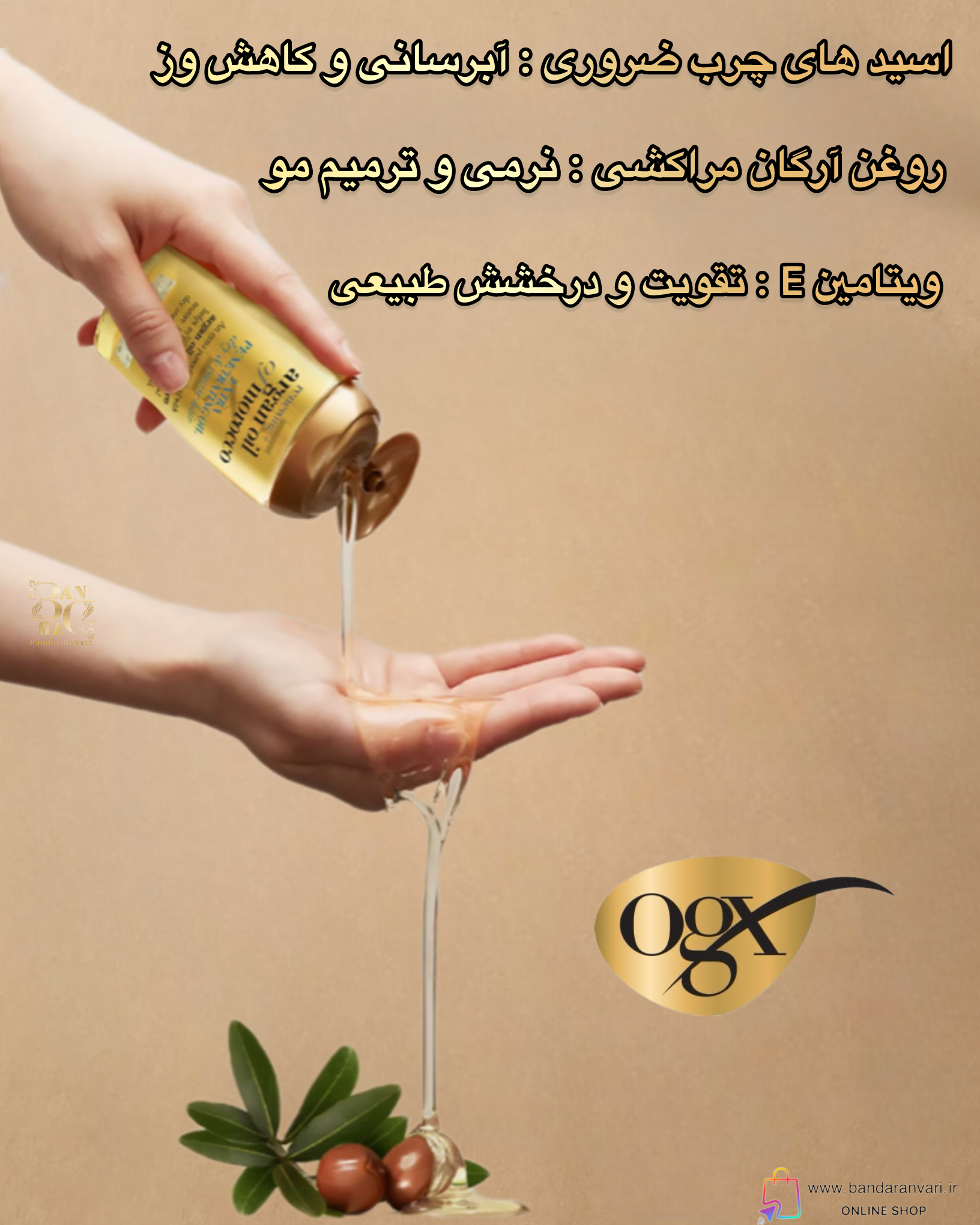 این روغن آرگان با فرمول نفوذپذیری بالا**، مخصوص موهای خشک و زبر طراحی شده است. ترکیبات مغذی آن شامل **روغن آرگان فشرده سرد و پروتئینهای ابریشمی است که به ترمیم، تقویت و افزایش لطافت مو کمک میکند. این محصول بدون پارابن و سولفات بوده و موها را بدون ایجاد سنگینی، نرم و درخشان میکند.