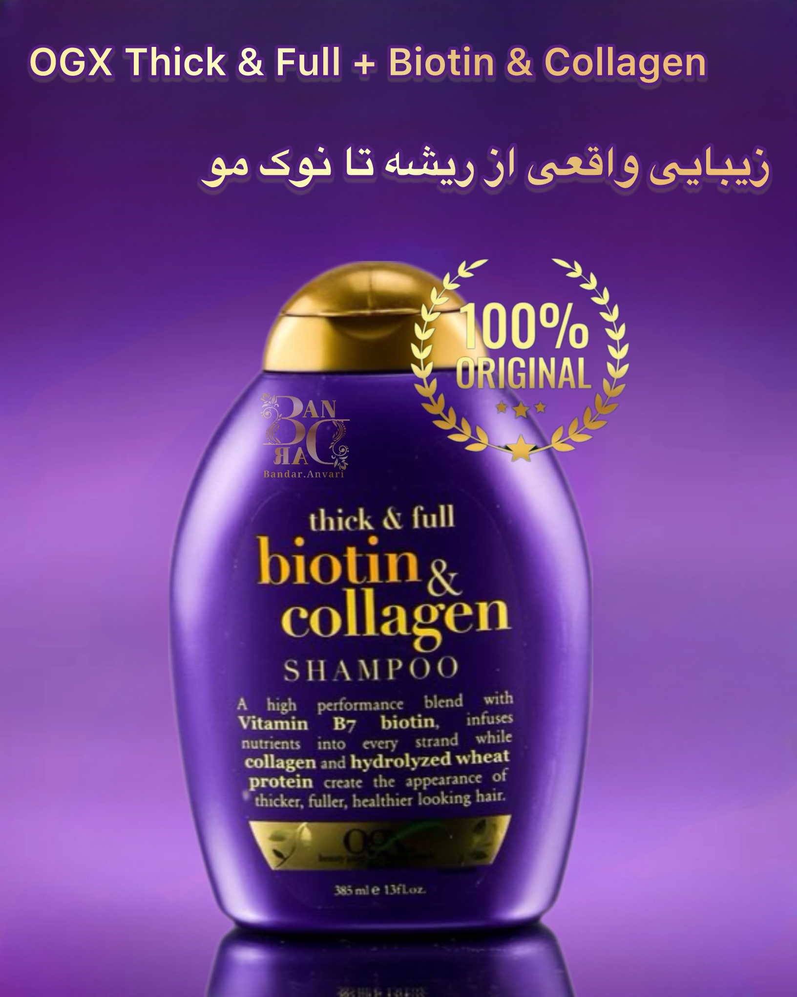 شامپو حجمدهنده بیوتین و کلاژن او جی ایکس | فرمول جدید و تقویتشده OGX Thick & Full + Biotin & Collagen Shampoo | NEW Improved Formula