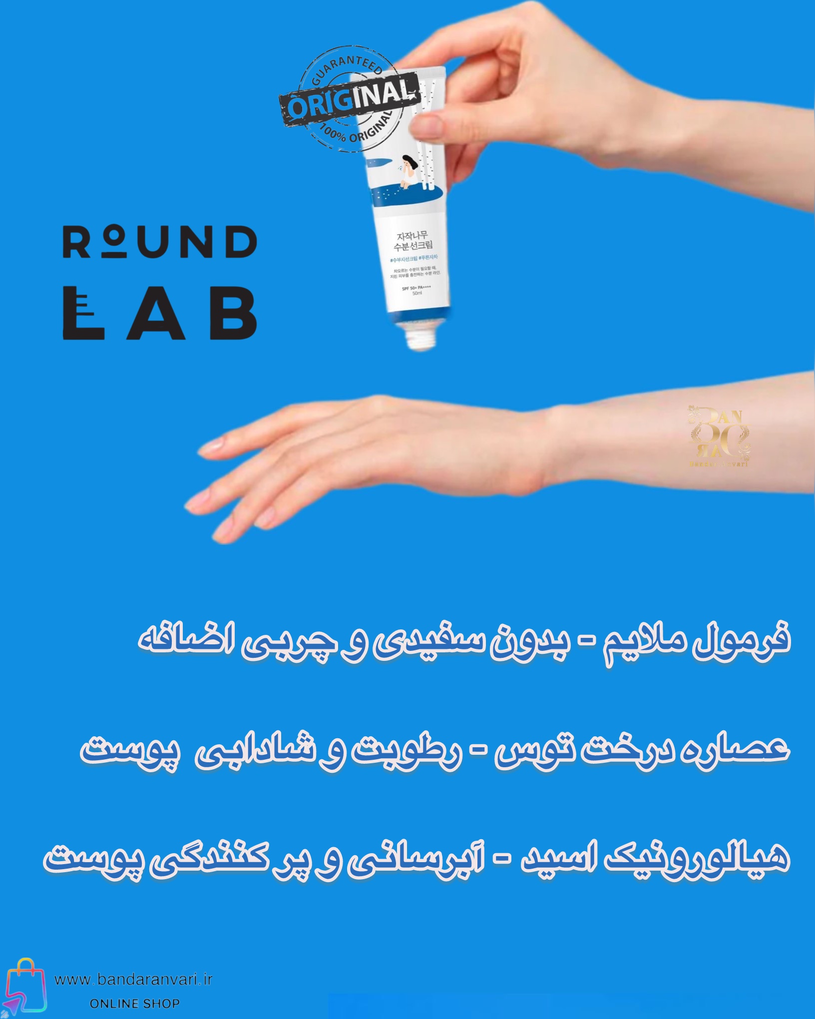 ضد آفتاب مرطوبکننده Round Lab با SPF 50+ PA++++، با ترکیب عصاره درخت غان، پوست را عمیقاً آبرسانی کرده و محافظتی قدرتمند در برابر آفتاب و آلودگی ارائه میدهد. مناسب انواع پوست، بهویژه پوست حساس و خشک.