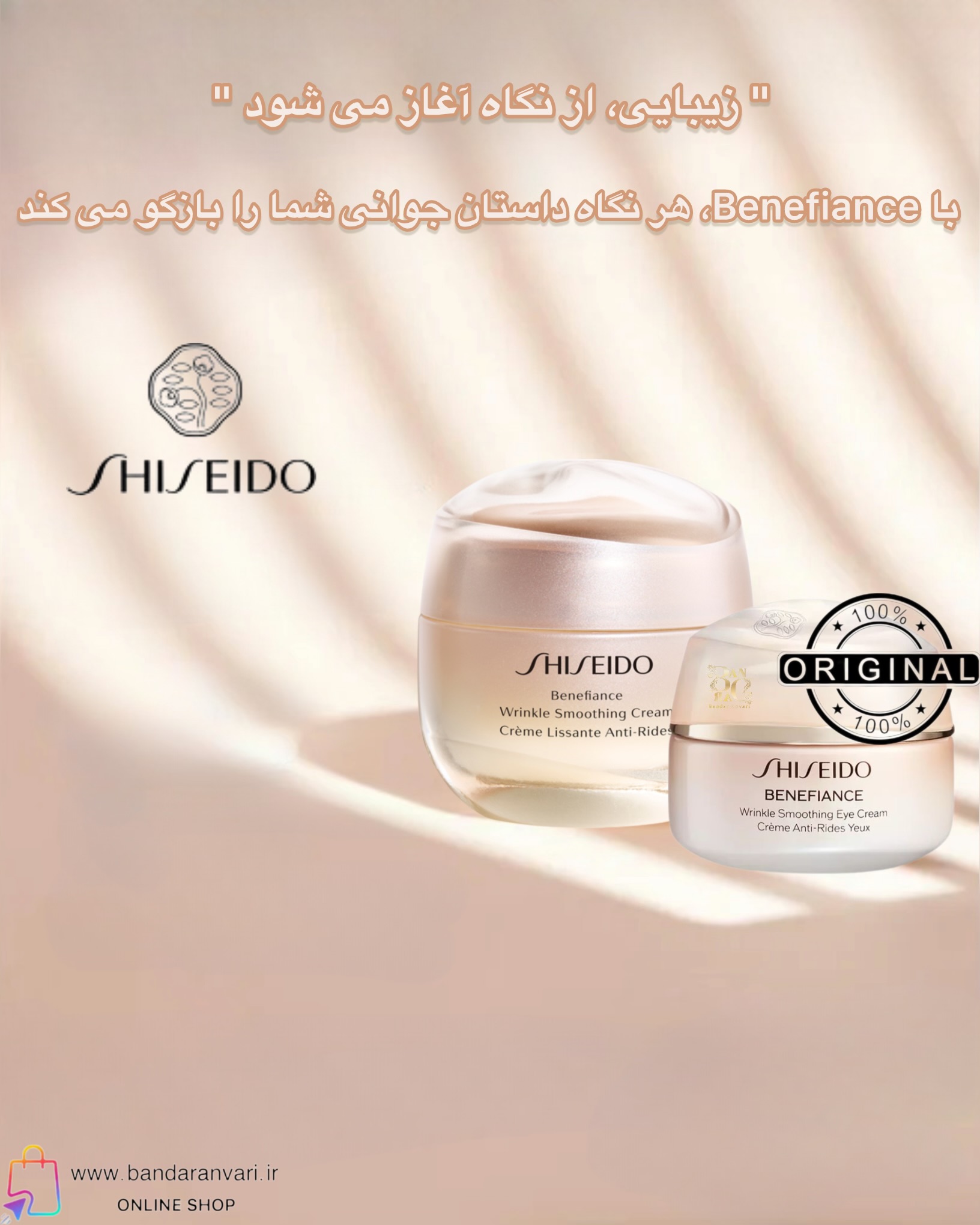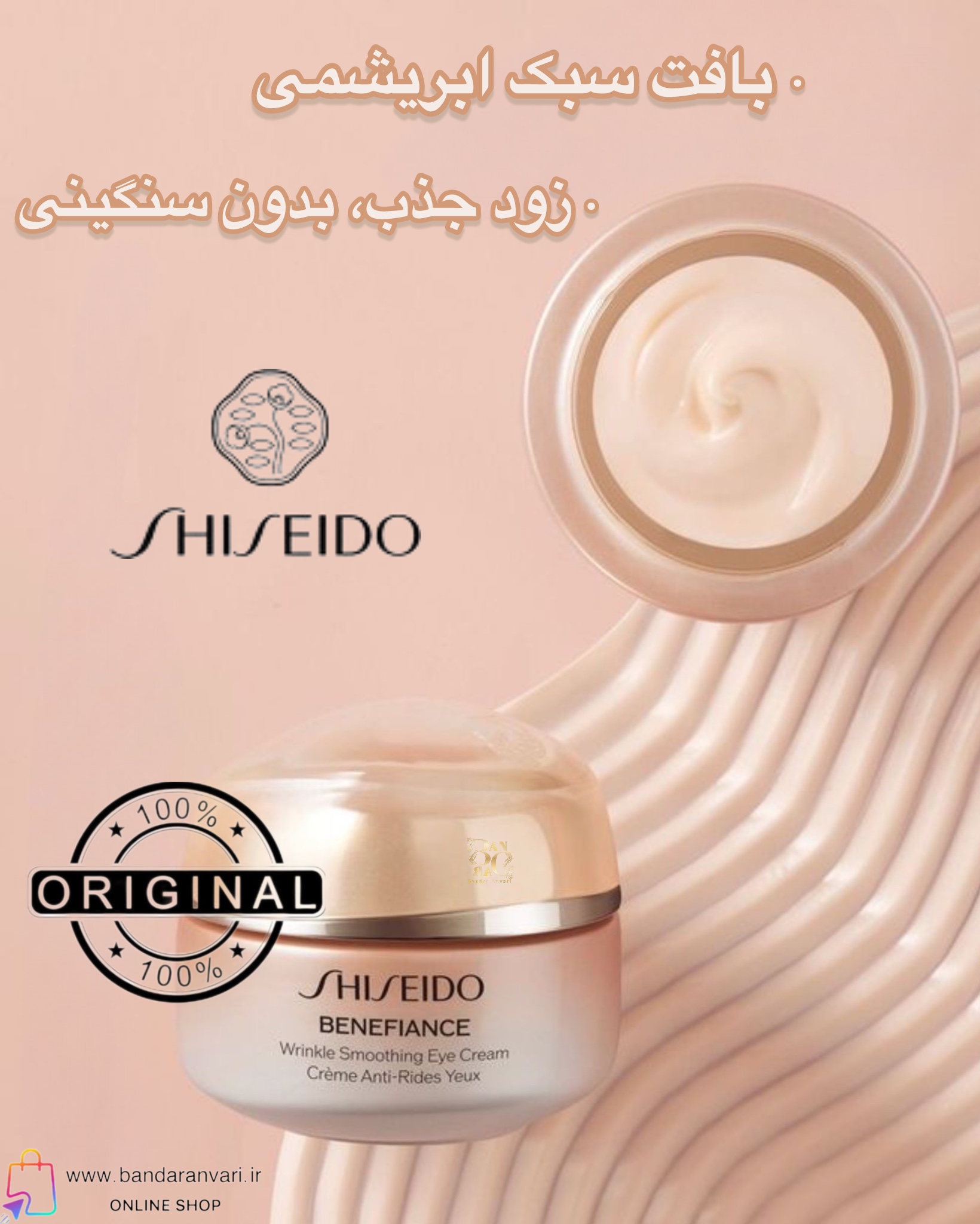 کرم دور چشم ضدچروک شیسیدو مدل Benefiance، با بافتی لطیف و مغذی، کاهش‌دهنده چروک و تیرگی، مناسب استفاده روز و شب برای انواع پوست