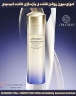 امولسیون روشن‌کننده و بازسازی‌کننده شیسیدو مدل Vital Perfection، با بافت سبک و غنی، تغذیه‌کننده و آبرسان، مناسب پوست‌های نرمال تا خشک، کاهش‌دهنده لک و افزایش‌دهنده درخشندگی پوست