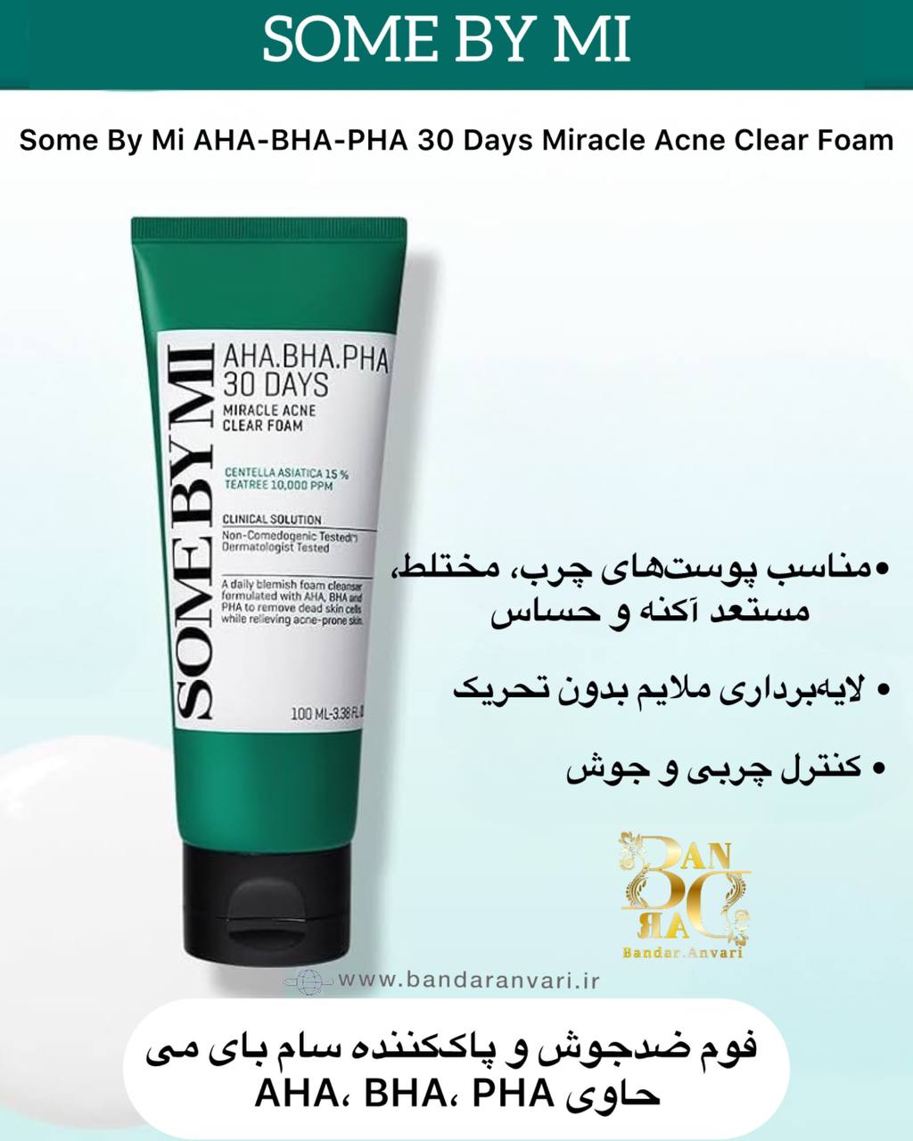 فوم ضدجوش و پاککننده معجزهآسای ۳۰ روزه سام بای می (حاوی AHA، BHA، PHA) Some By Mi AHA-BHA-PHA 30 Days Miracle Acne Clear Foam