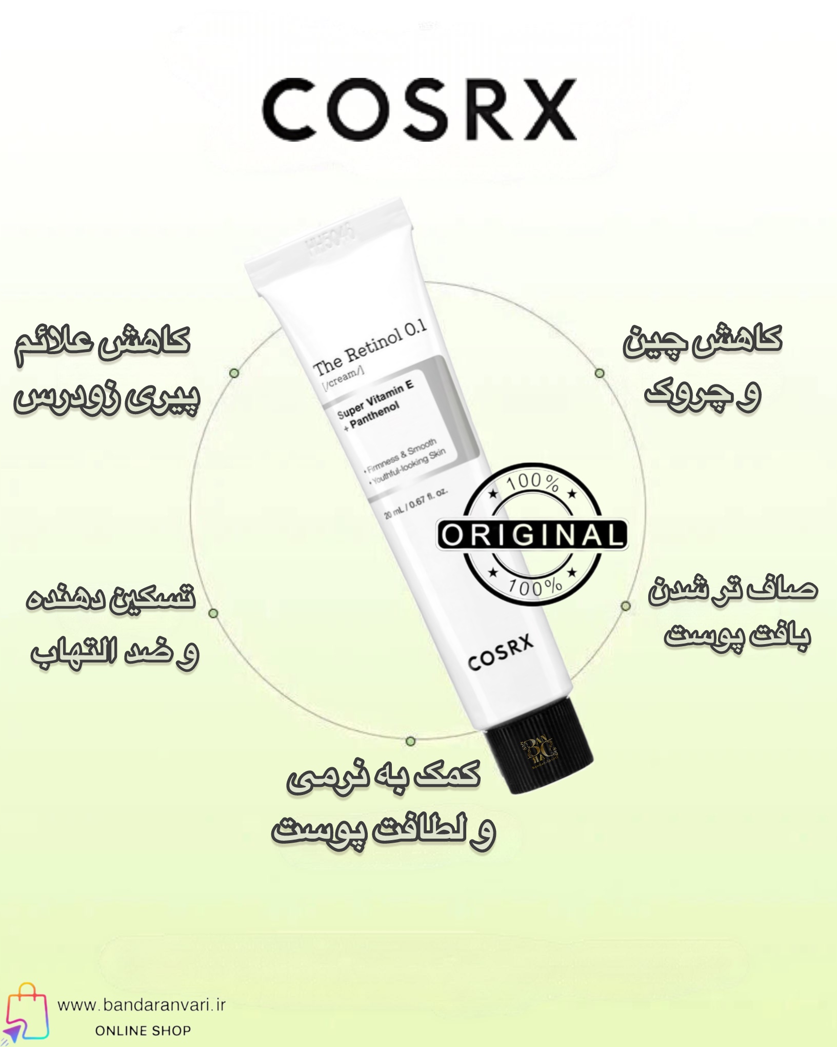 • حاوی ۰.۱٪ رتینول خالص برای بهبود خطوط ریز و چروک