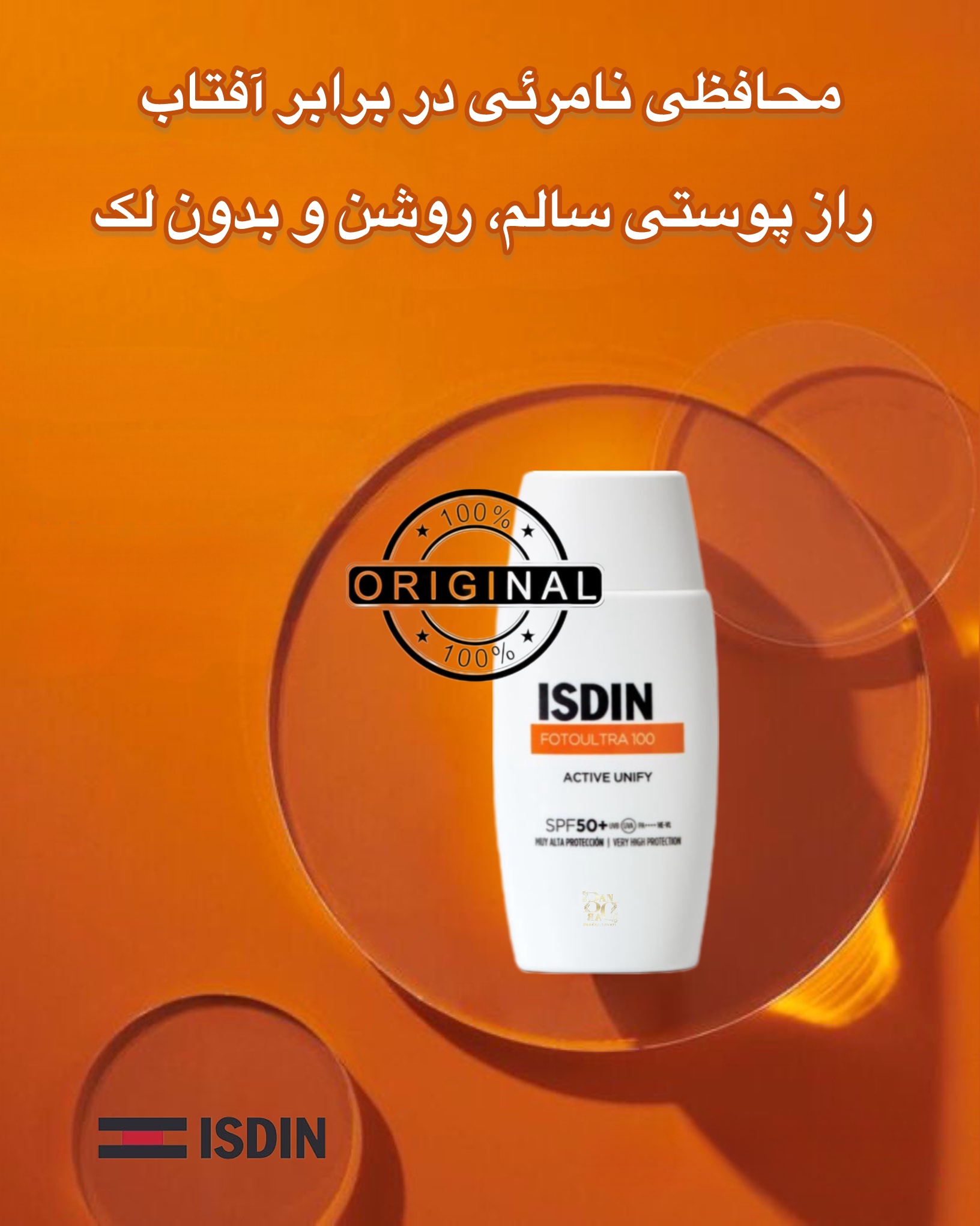 ضدآفتاب روشنکننده ایزدین مدل Active Unify – محافظت بسیار بالا + کاهش لک و یکنواختسازی رنگ پوست ISDIN FotoUltra 100 Active Unify Fusion Fluid SPF 50+ – Very High Sun Protection & Skin Tone Unifier