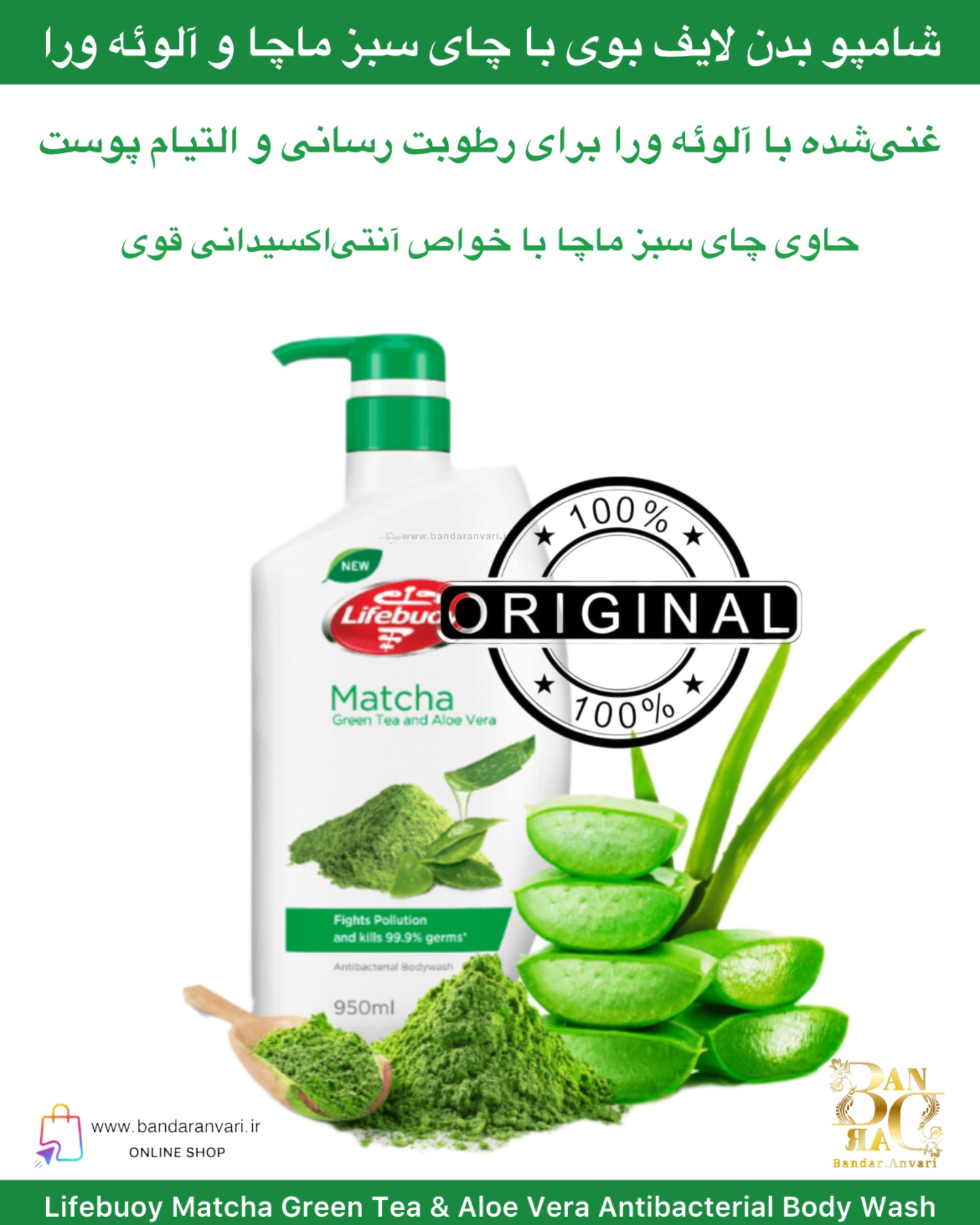 شامپو بدن لایف بوی با چای سبز ماچا و آلوئهورا – Lifebuoy Matcha Green Tea & Aloe Vera Antibacterial Body Wash
