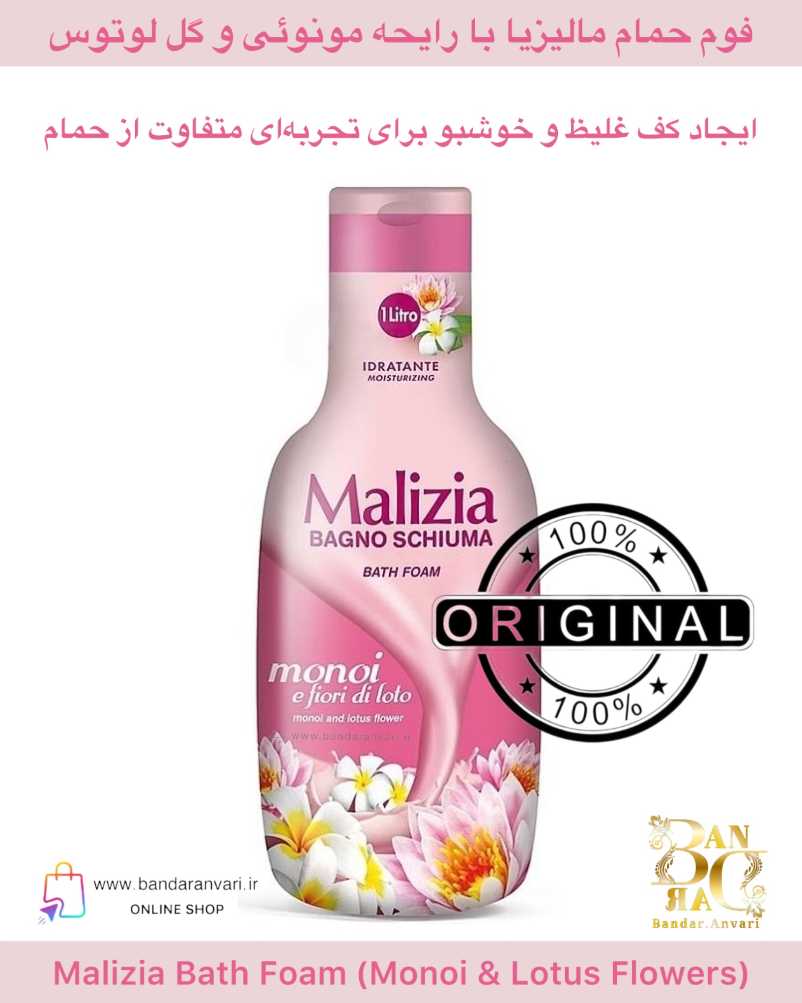 فوم حمام مالیزیا با رایحه مونوئی و گل لوتوس – Malizia Bath Foam (Monoi & Lotus Flowers)