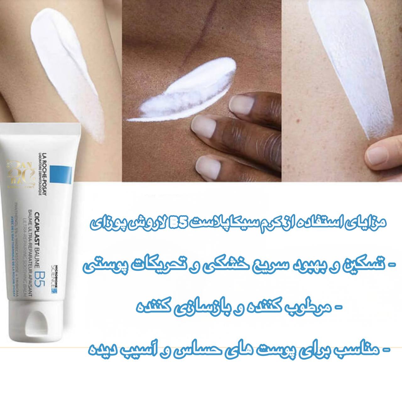 کرم ترمیمکننده CICAPLAST BAUME B5 لاروش پوزای، تسکین فوری و بازسازی پوست حساس و آسیبدیده با ویتامین B5 و مادکاسوساید.
