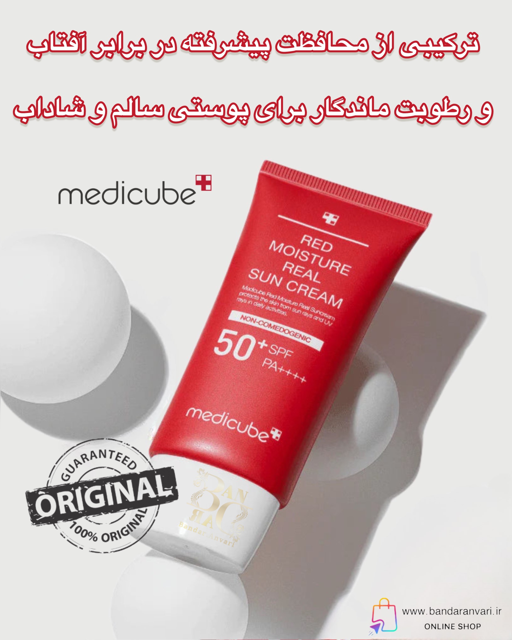 ضدآفتاب مدیکیوب (مرطوبکننده ) مدل رد مویسچر +SPF 50 PA++++ Medicube Red Moisture Real Sun Cream – SPF 50+ PA++++ (Non-Comedogenic)